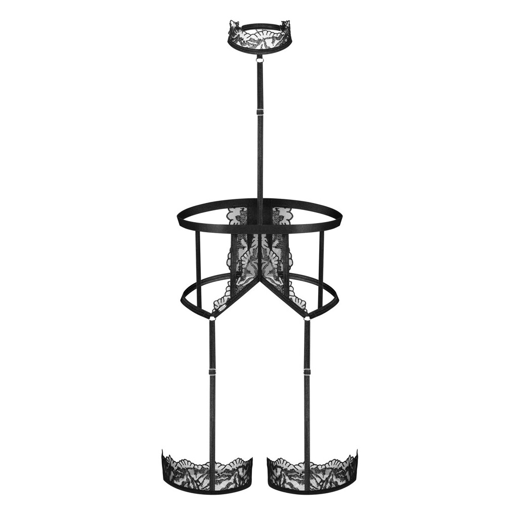 Élégant porte-jarretelles noir Hersis de Obsessive, composé de bretelles extensibles souples avec des détails en dentelle délicate. Le pont décolleté avec collier et les jarretelles sont solidement cousus à la ceinture extravagante à l'avant. Tout est réglable, y compris la fermeture à crochets à l'arrière. Le harnais peut être porté seul ou comme complément sexy à d'autres articles de lingerie.