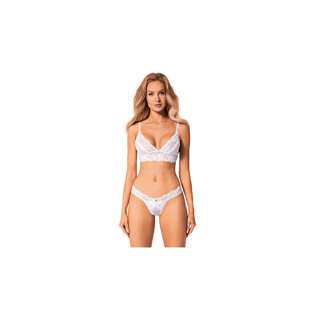 Wenn Sie auf der Suche nach einzigartigen Dessous für einen besonderen Anlass sind, ist dieses Set eine wahrhaft himmlische Wahl! Zartes, durchscheinendes Netz mit aufgestickten, kleinen Blumen wird Ihr Herz erobern. Das Heavenlly-Set besteht aus dreieckigen, weichen Cups, mit einer verlängerten Taille unter der Büste (Longline) und einem verführerischen String. Größe XS/S / Materialzusammensetzung: 90% Polyamid, 10% Elasthan