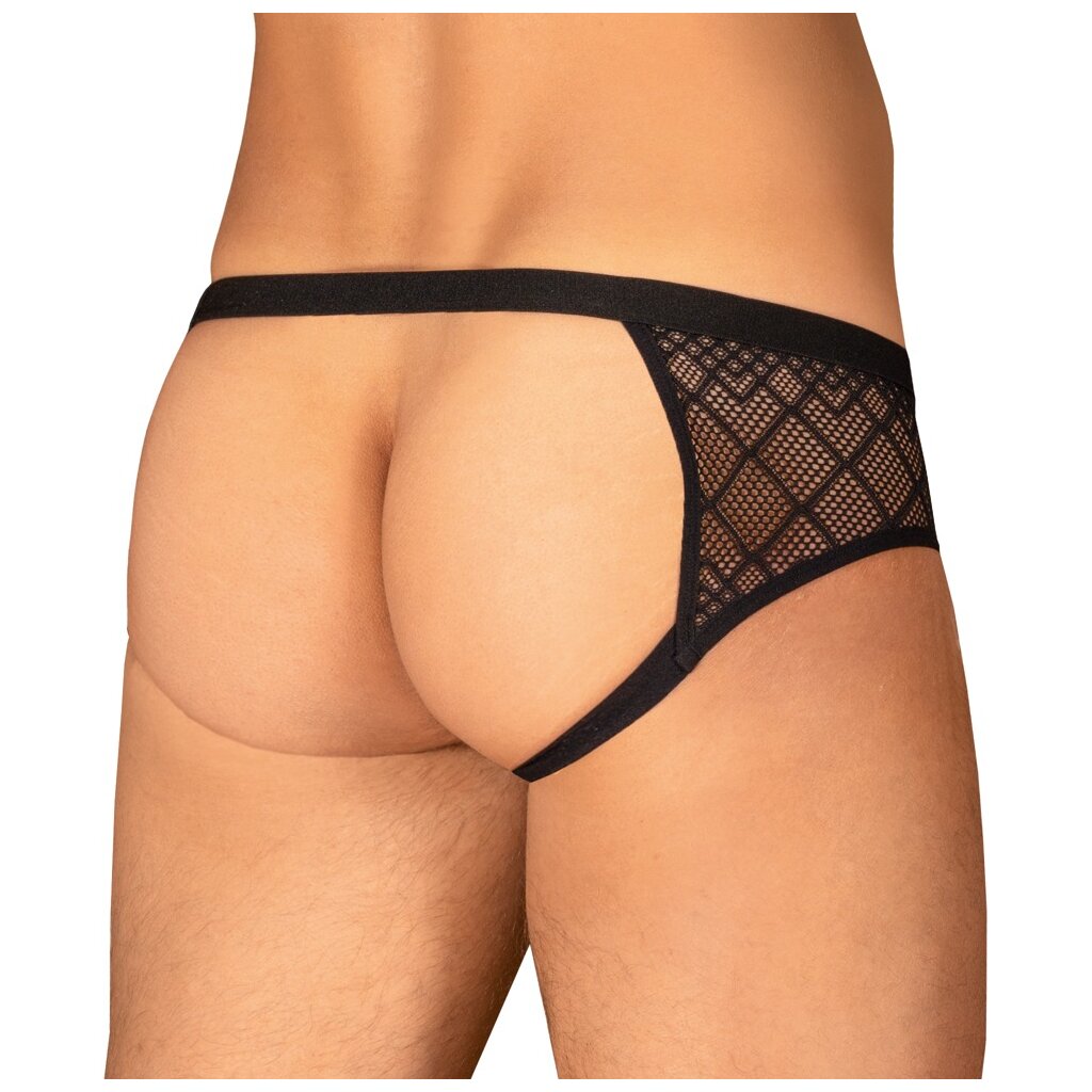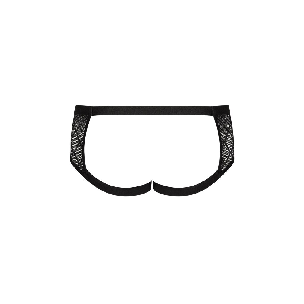 Slip noir Severio by Obsessive en transparence à motifs extravagants avec une poche opaque en dessous. Souple et élastique pour un confort total. Ceinture élastique confortable avec petit élément métallique sur le devant. Les bretelles confortables laissent les fesses libres, les poussent et les mettent en valeur.