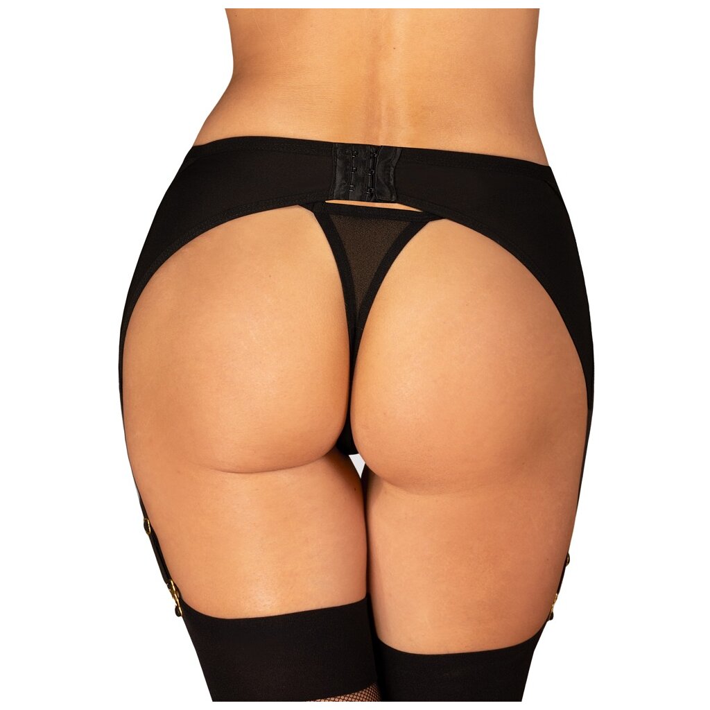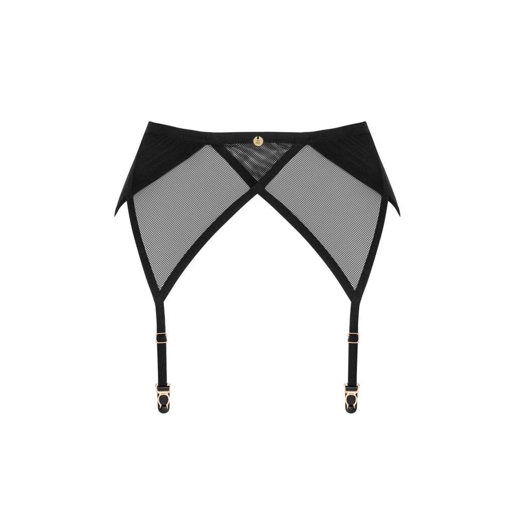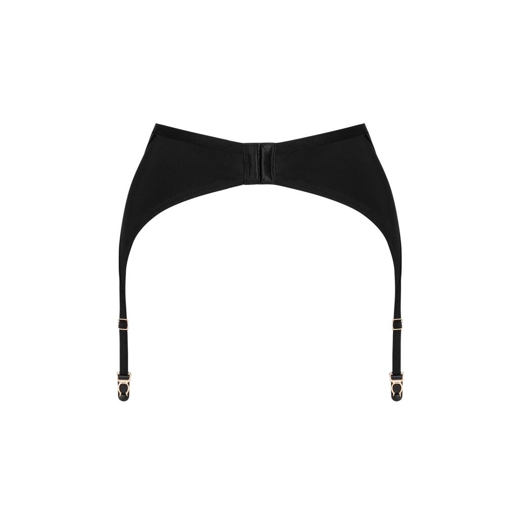 Der schwarze Strapsgürtel Nesari von Obsessive verführt mit zarter, weicher Mesh-Transparenz im Mix mit weichem, blickdichtem Stretchmaterial. Goldfarbene Details ziehen alle Blicke auf sich. Dank des mehrstufigen Verschlusses und der verstellbaren Strapshalter lässt er sich leicht in der Größe anpassen.