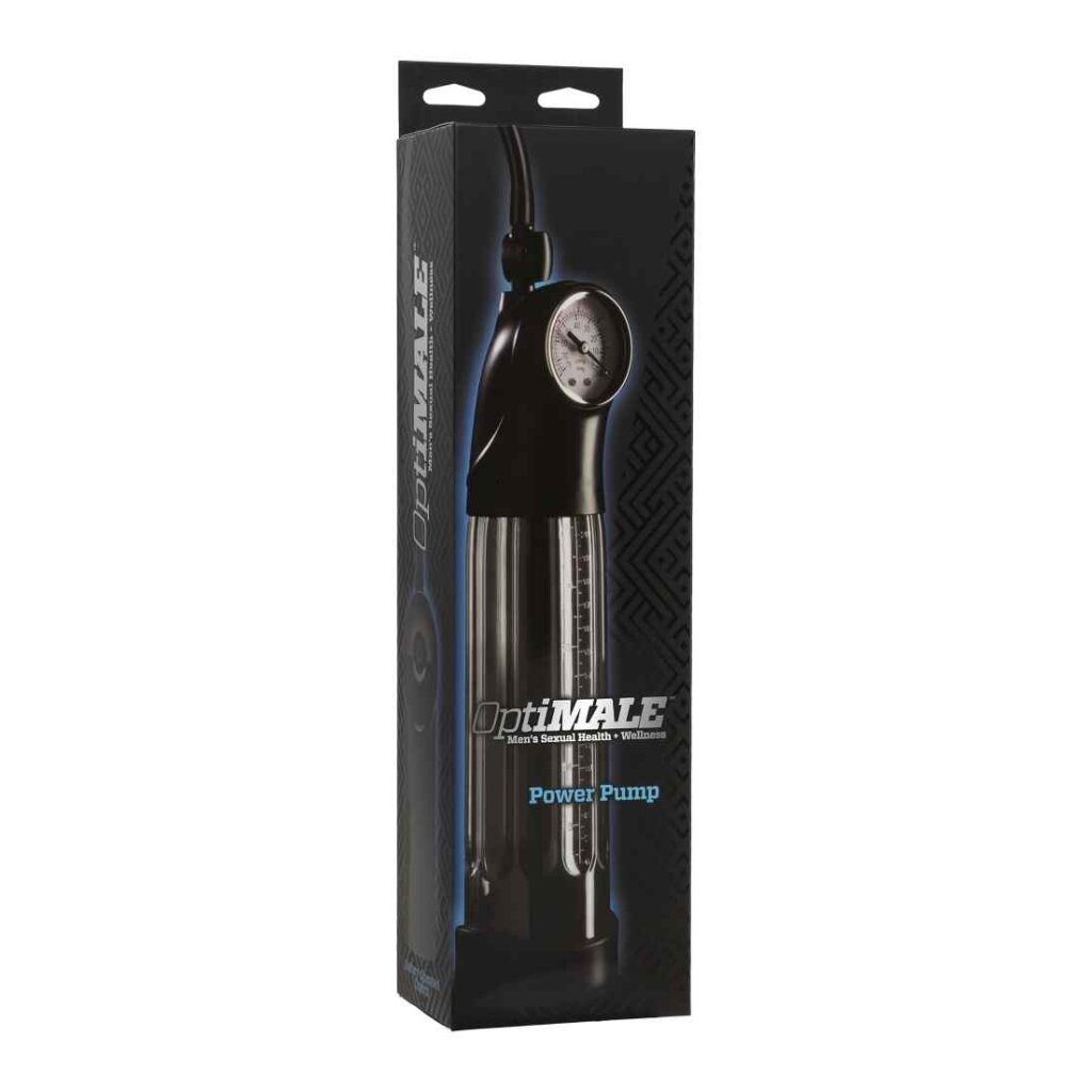 Get ready for bigger, thicker erections with the OptiMALE Power Pump! Watch the growth through the large, transparent vacuum cylinder with a soft silicone sleeve for an airtight seal, an elegant pressure gauge and an easy-to-read measurement scale to monitor progress. The powerful automatic pump is operated with the push of a button, and a quick-release valve knob allows for adjustable pressure. The Power Pump directs blood flow to your penis to achieve the ultimate erection and increase your size and sexual satisfaction! Made of phthalate-free, ABS plastic.