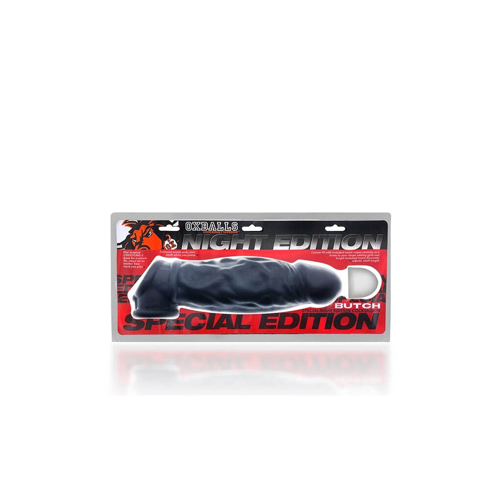 BUTCH adjust fit cocksheath in der neuen NIGHT EDITION...samtiges Silikon-Finish PLUS+silicone™ Mischung, TPR für erstaunliche Dehnung + Silikon für ein gummiartiges warmes Gefühl. Die Farbe NIGHT BLACK ist ein tiefes, mattes Schwarz, das sich warm und seidig-glatt anfühlt, weniger griffig, es gleitet auf... mehr wie schwarzer Vintage-Gummi - es sieht reich und tief aus und fühlt sich super glatt an.