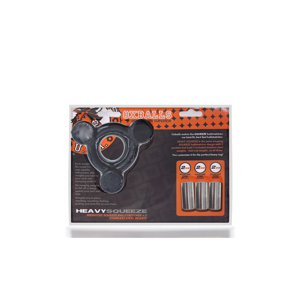 HEAVY SQUEEZE gewichtete Ballstretcher legt drei Gewichte direkt auf Ihren Sack in gummiartigen Halterungen, die an dem besten Original SQUEEZE Ballstretcher befestigt sind. HEAVY SQUEEZE wird mit 3 Edelstahlgewichten geliefert, die Sie separat für zusätzliches Gewicht hinzufügen können, weniger, wenn Sie wollen, mehr, wenn Sie brauchen! HEAVY SQUEEZE platziert das Gewicht in der Mitte des Ballsacks ÜBER Ihren Bällen, wo das Gewicht das meiste "Gefühl" hat. Gesamthöhe des Produkts: 51 mm / Gesamtbreite des Produkts: 77 mm / Gesamtlänge des Produkts: 70 mm / Innenumfang des Ballrings (breiteste Stelle): 102 mm / Innendurchmesser des Ballrings (breiteste Stelle): 32 mm / Innenumfang des Ballrings (schmalste Stelle): 83mm / Ballring-Innendurchmesser (engste Stelle): 23mm / Gewicht (nur Ballstretcher): 0,08 Kilogramm / Gewicht (Einzelgewicht): 0,03 Kilogramm
