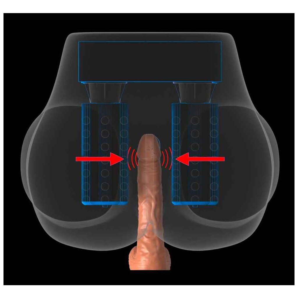 Lebensechtes Doggy Style-Vergnügen mit Vibration und Melk-Funktion! Absolut realistisch nachgeformter Masturbator-Torso mit prächtigen Pobacken und Vagina- und Anus-Öffnung. Das hautähnliche Real-Material sieht aus wie echte Haut und fühlt sich auch so weich und seidig an. In jeder Pobacke rotiert ein kraftvoller Motor und im Zusammenspiel sorgen sie für eine intensive Melk-Massage – 5 Modi und 5 Geschwindigkeiten sorgen dabei für reichlich Abwechslung. Vibrationen in 5 Modi und 5 Geschwindigkeiten sorgen für zusätzliche Stimulation. Mit der kabelgebundenen Fernbedienung sind alle Funktionen getrennt steuerbar – ganz bequem per Knopfdruck. Mit seinem Gewicht von über 9 kg liegt der Torso fest und rutschsicher auf jeder glatten Oberfläche und lässt sich sogar freihändig penetrieren. Durch einfaches Durchspülen mit Wasser lässt der Torso sich anschließend leicht und bequem reinigen. Der Masturbator-Torso wird direkt über den Netzstecker mit Strom versorgt und verfügt über eine 30-Minuten-Abschaltautomatik. Inklusive sind 3 verschiedene Steckdosenadapter, sodass der Masturbator weltweit (z. B. auf Reisen) verwendet werden kann.