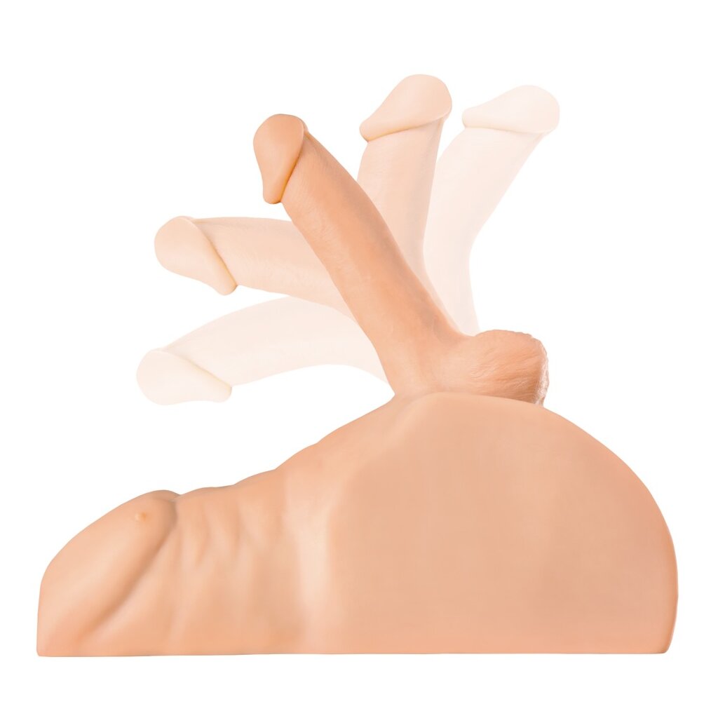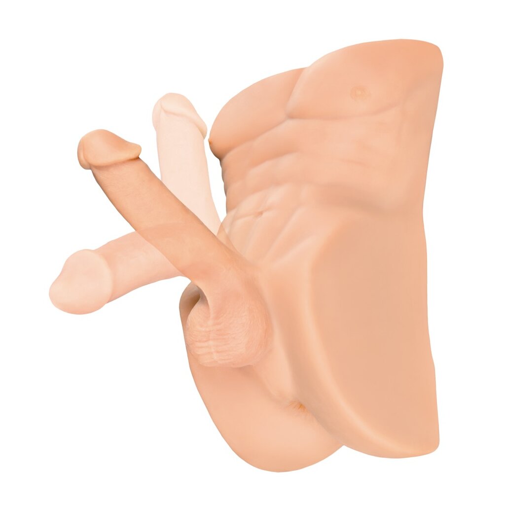 Perfect Ride male body torso by PDX Plus with all-around movable penis, bulging testicles and inviting anus opening. The muscular chest and washboard abs feature the new EZ Bang design with higher hips for an even more comfortable ride. And the anus opening, also placed higher, is now at the perfect angle for even easier access and penetration. The tight pleasure channel is excitingly varied in texture on the inside for realistic anal feeling.