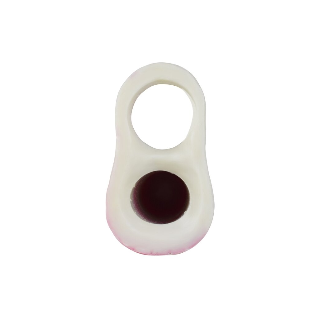 • Sie umfasst das Geschlecht und wird mit einem Ring, der über den Hodensack geht, festgehalten.