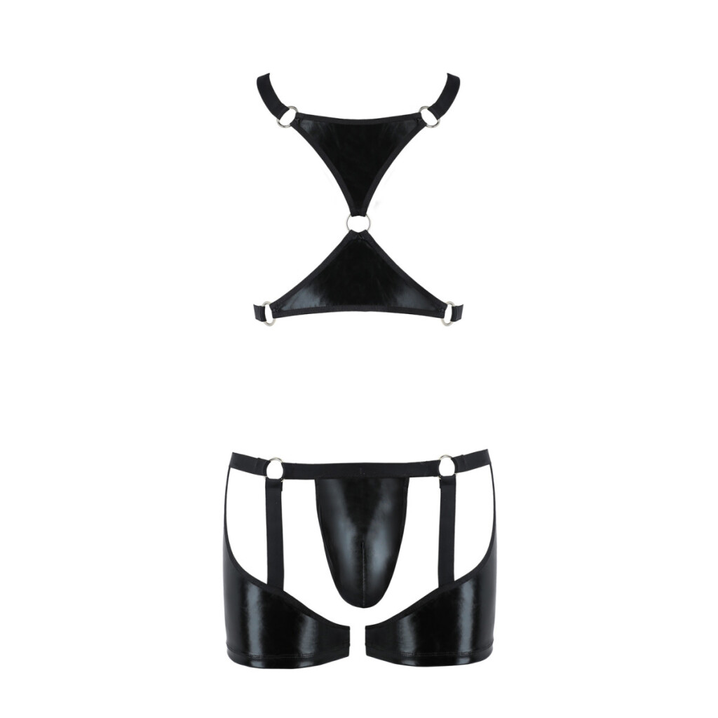 - L'ensemble est une proposition de lingerie érotique masculine de style wetlook