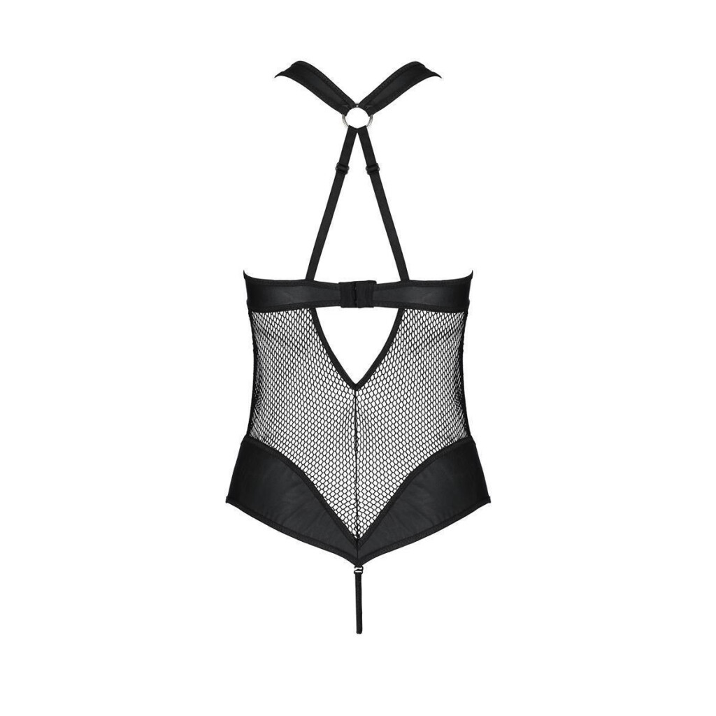 • Elegant bodysuit made of a mix of soft, coarse-meshed mesh as well as leather
