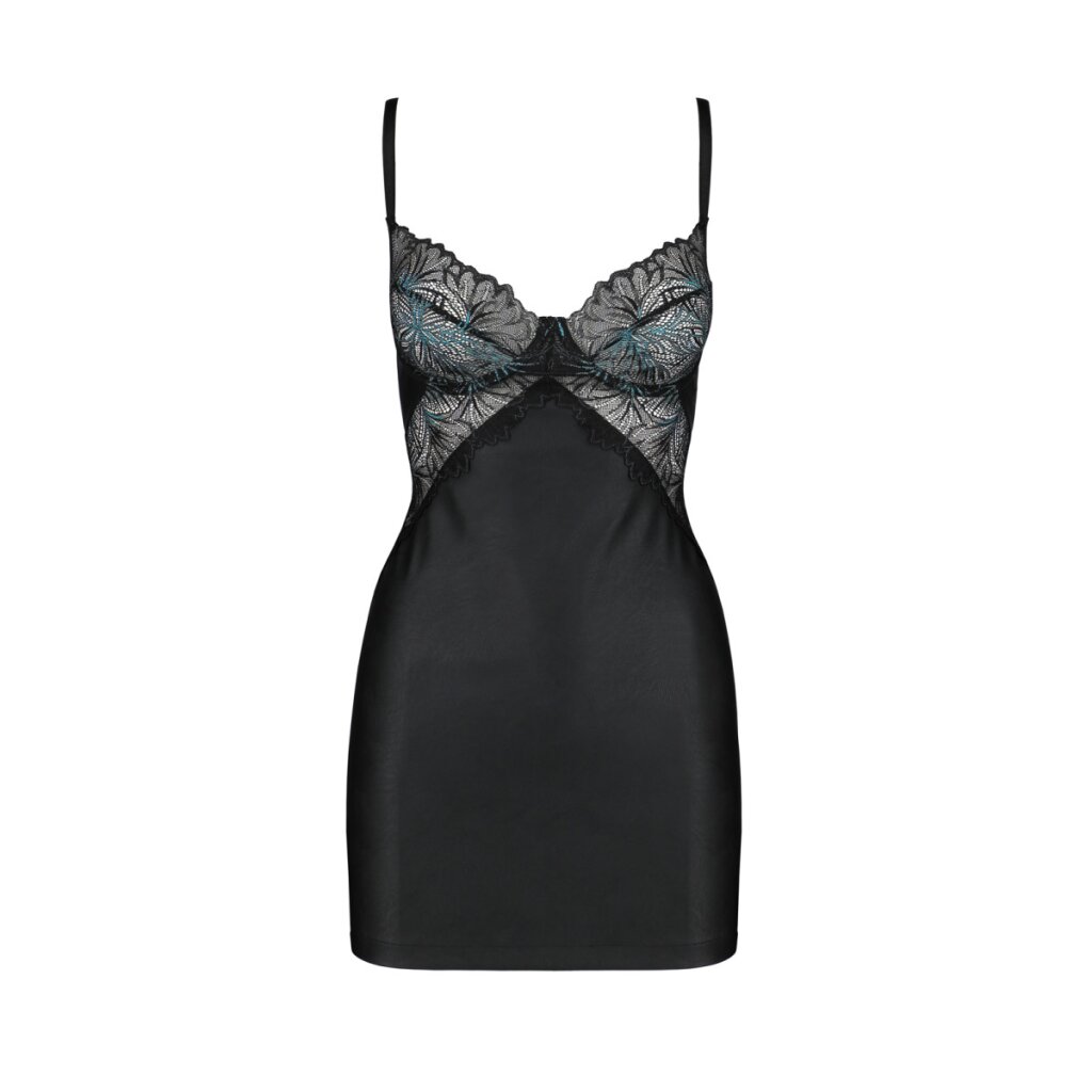 • Robe sexy réalisée dans un mélange de matière imitant le cuir et de dentelle délicate