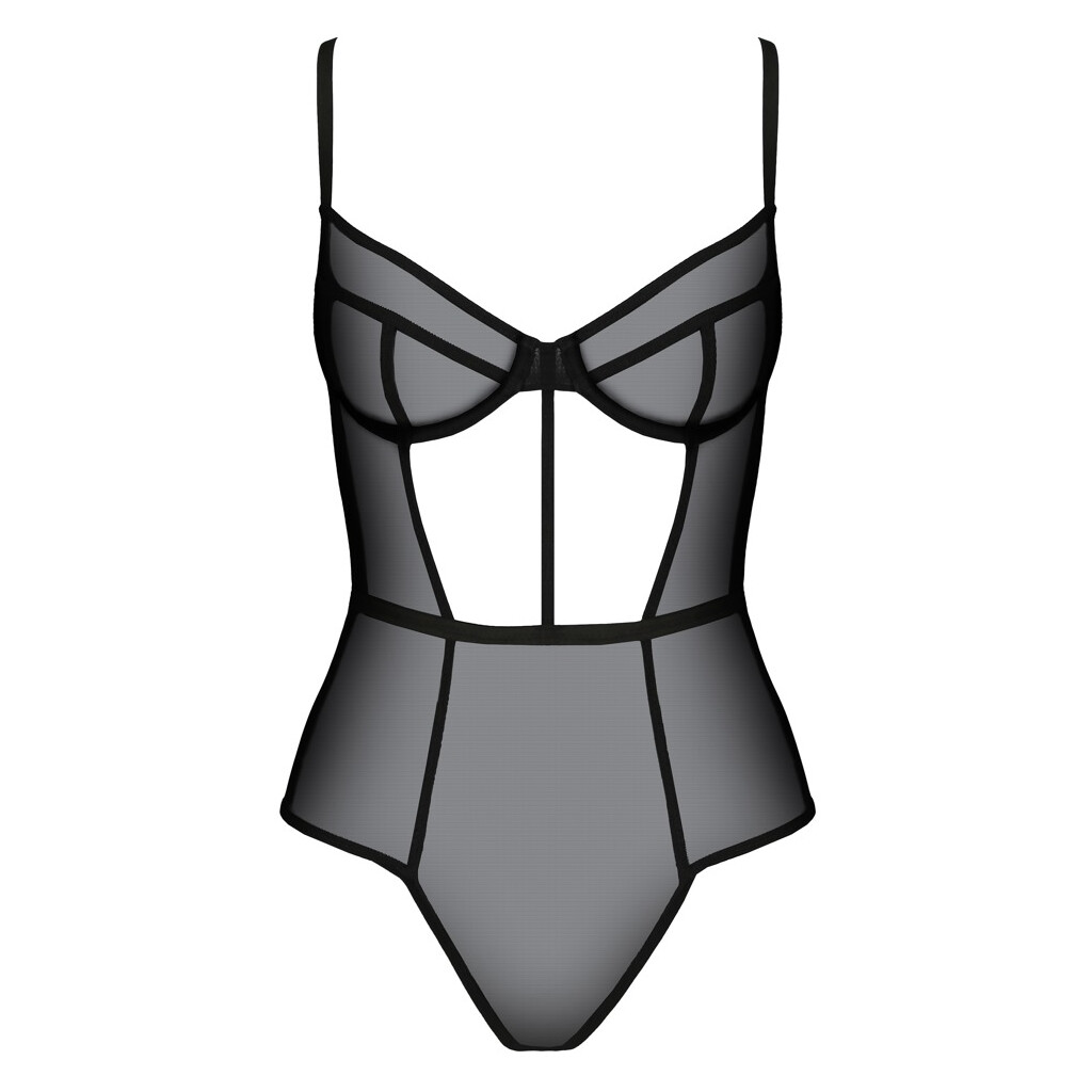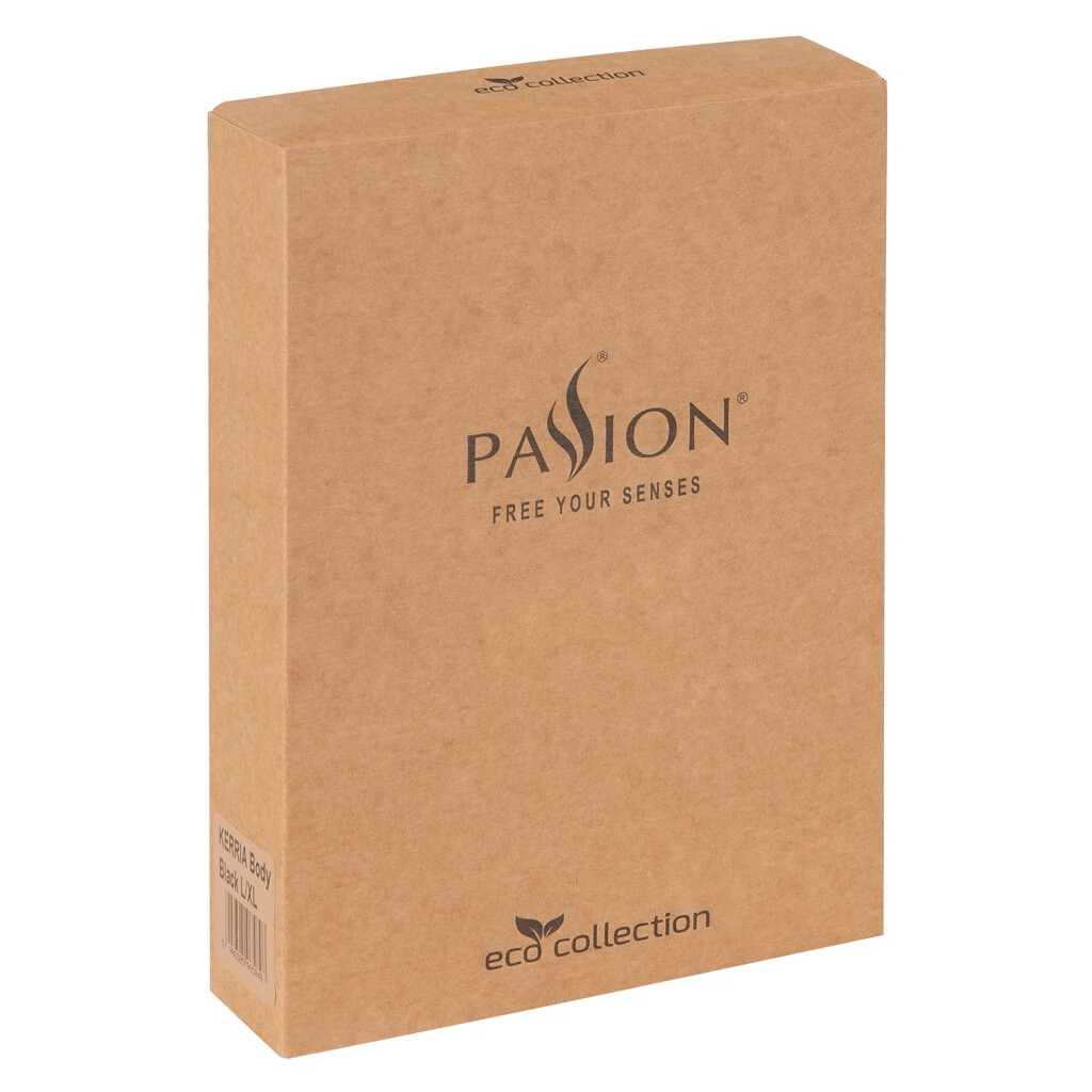 Body Varella doux et souple de la collection Eco de Passion, entièrement en Powernet élastique. Style Rio séduisant avec découpe frontale, jambes hautes et fermeture à crochets à l'entrejambe. Bonnets à armatures, les bretelles sont réglables pour une coupe optimale. Dans le dos, petite découpe ronde sous la fermeture à 1 crochet.