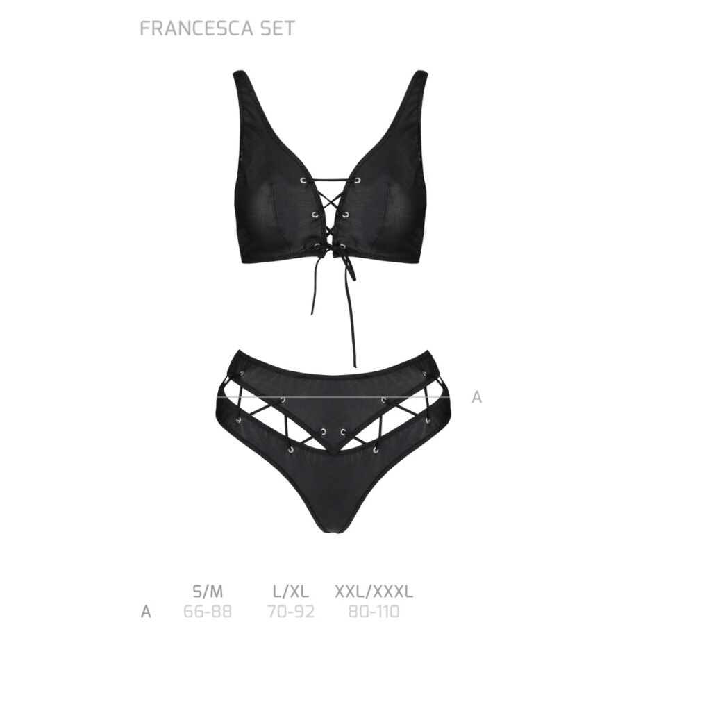 • Extravagant 2-piece set made of leather-like material as well as coarse mesh net