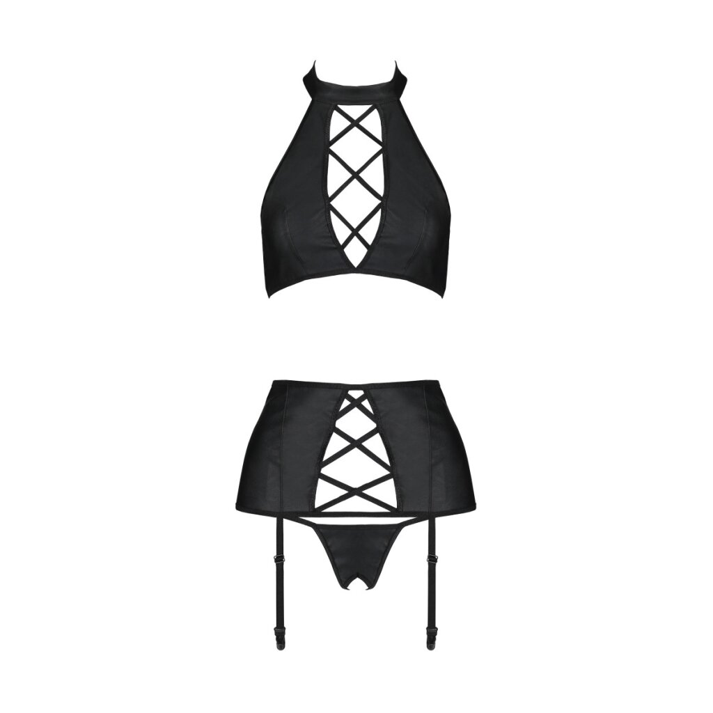 • Seductive 3-piece set made of leather-like material