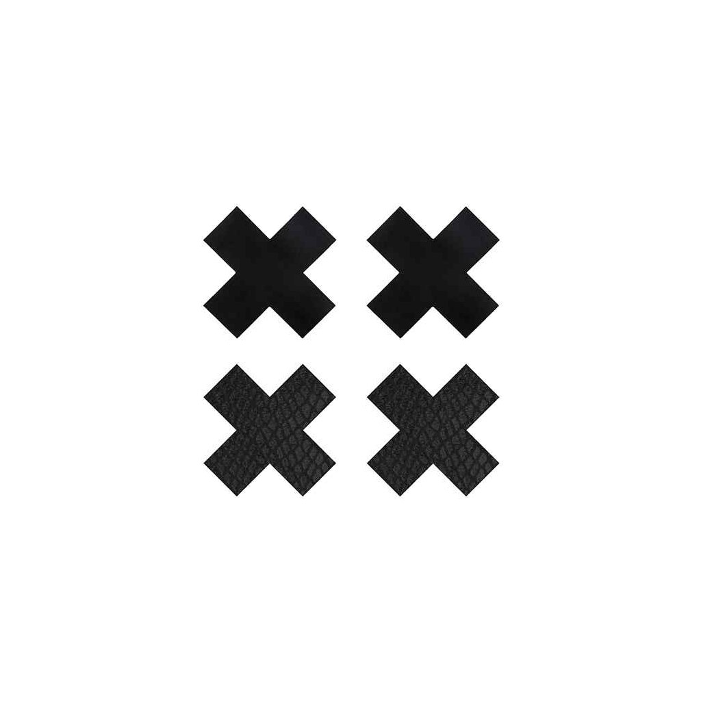 • Die selbstklebenden X-förmigen Pasties umfassen ein schwarzes Satinset