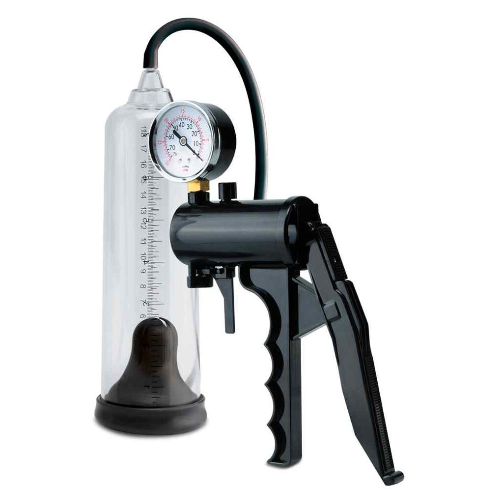 Für ein starkes und hartes Glied! Die handliche Scherengriffpumpe sorgt dabei für eine bequeme Erzeugung des wirkungsvollen Unterdruckes, der ganz einfach mit der Scherengriffpumpe kontrolliert werden kann. Der Druck lässt sich währenddessen leicht vom Manometer ablesen und sich auch schnell lösen mit dem Sicherheitsventil.