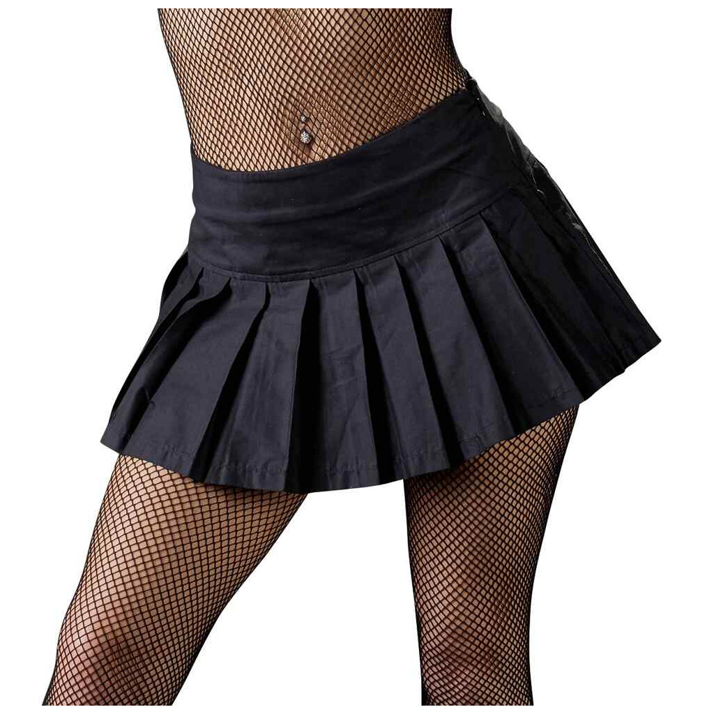 Mini jupe plissée noire avec petite fermeture éclair sur le côté. 98 otton, 2% spandex.