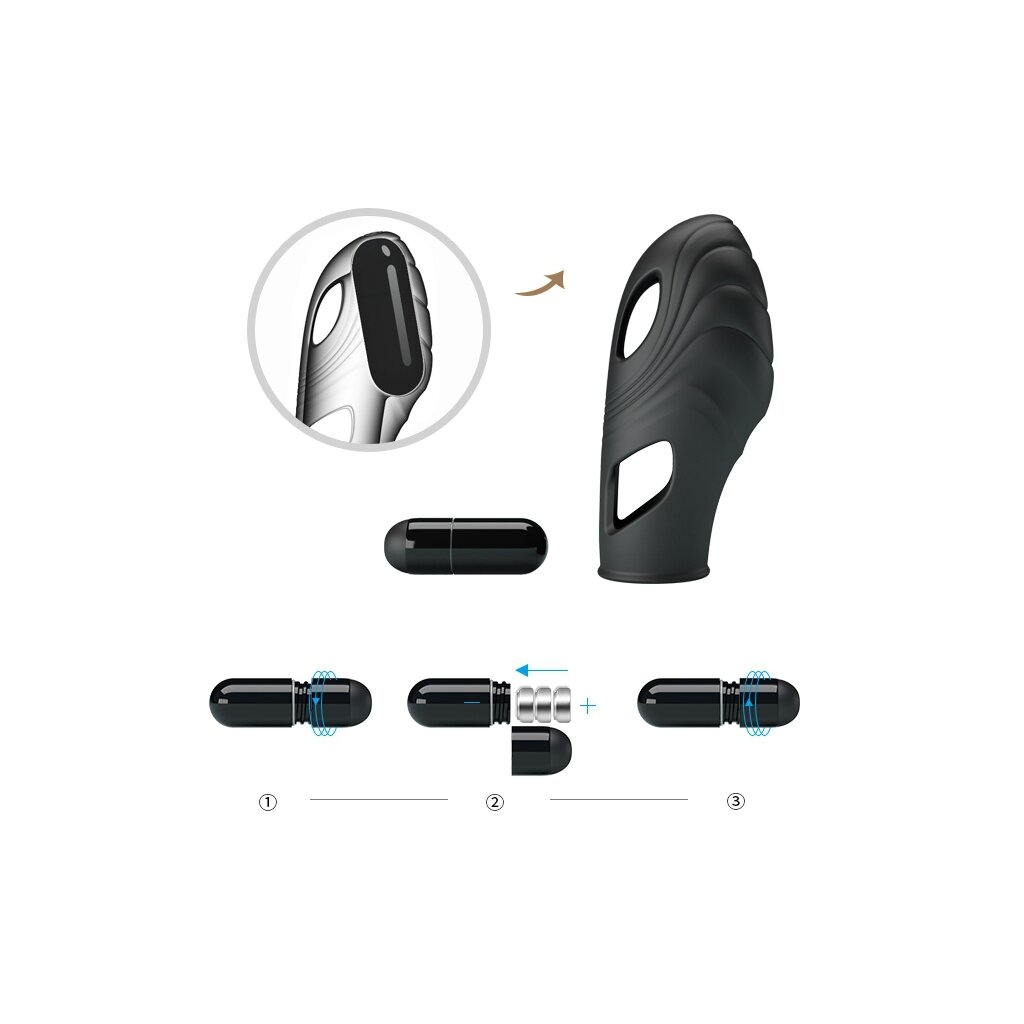 Le doigtier Pretty Love Lich est un étui noir conçu pour stimuler le clitoris. Elle dispose d'un vibrateur interne et a une longueur de 8 cm et une largeur de 3,5 cm. Fabriquée en silicone, elle offre une sensation agréable et douce.