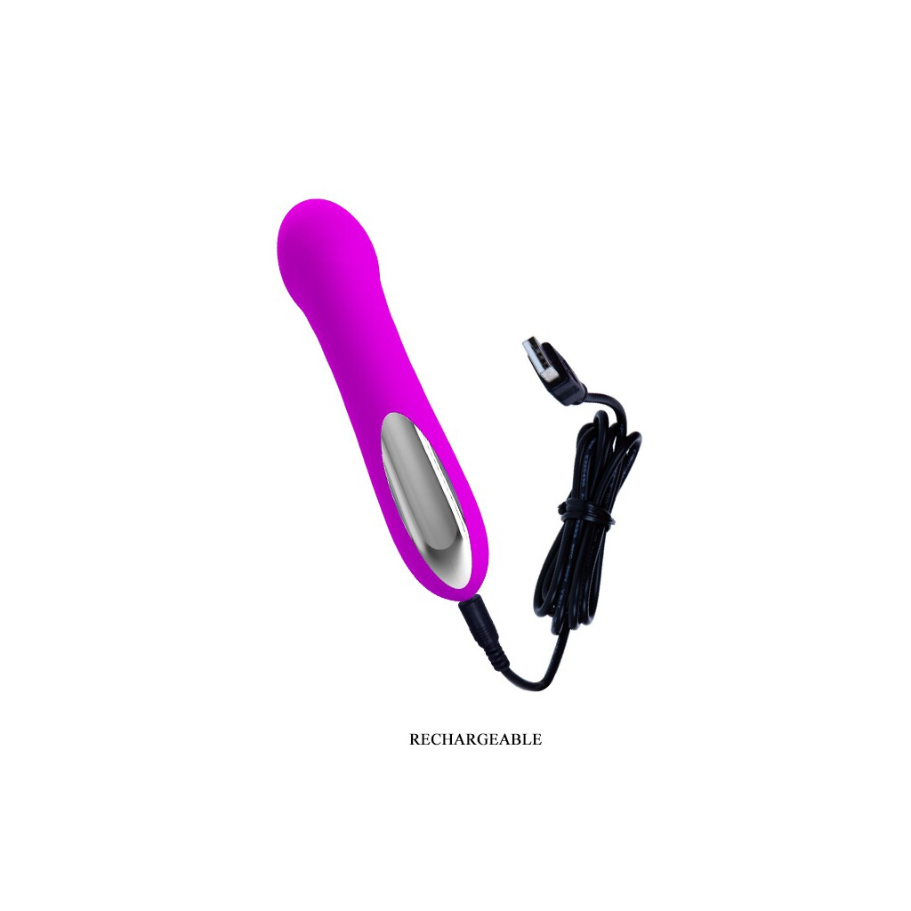 The Pretty Love Reuben vibrator in purple is a rechargeable vibrator with a length of 14.2 cm. It has 30 different vibration modes and is waterproof, making it perfect for use in the shower or bath. With its USB rechargeable function, it is practical and easy to use, ideal for taking with you and on the go.