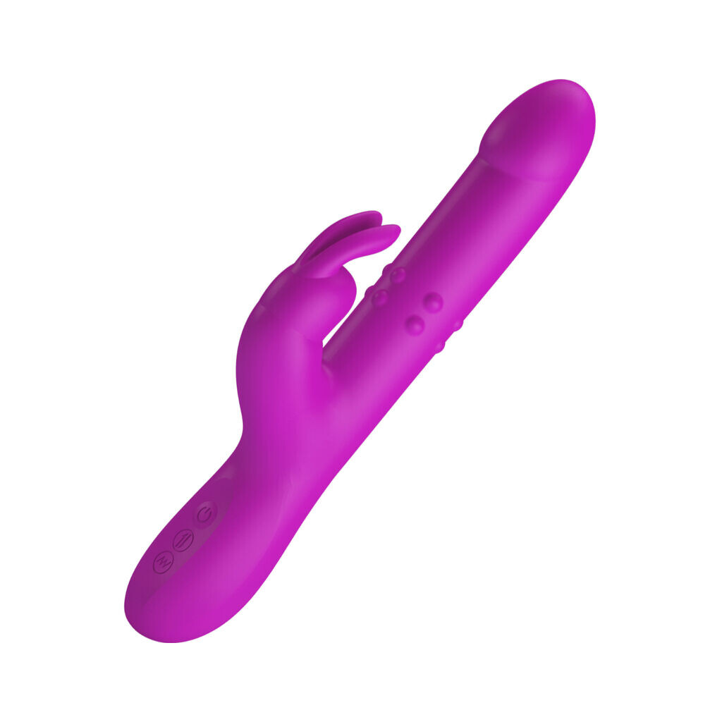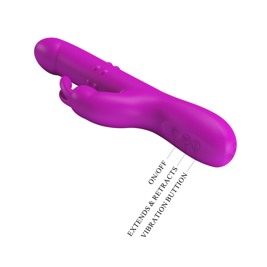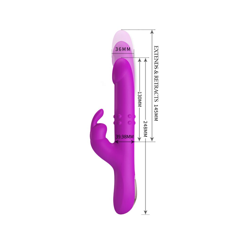 Ce programme de plaisir complet avec des vibrations à plusieurs niveaux, des poussées et des rotations peut être facilement contrôlé par le bouton de commande.
