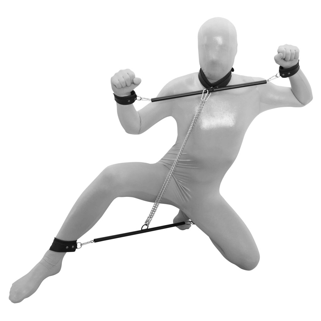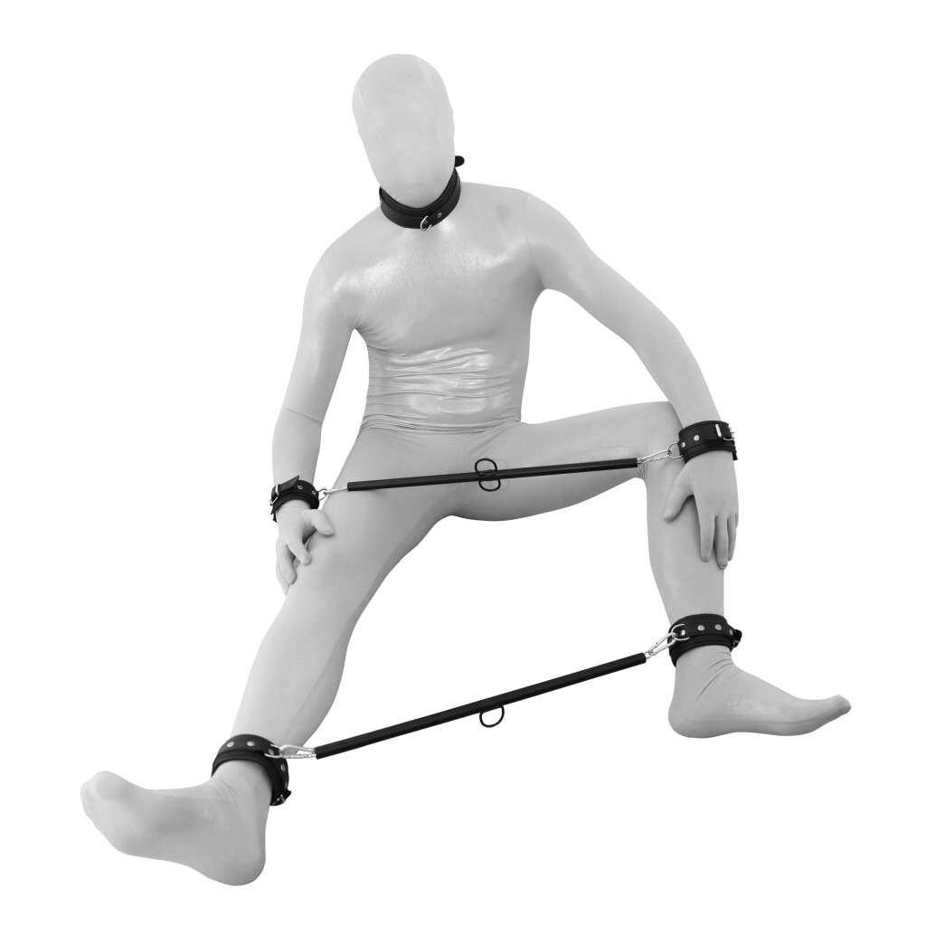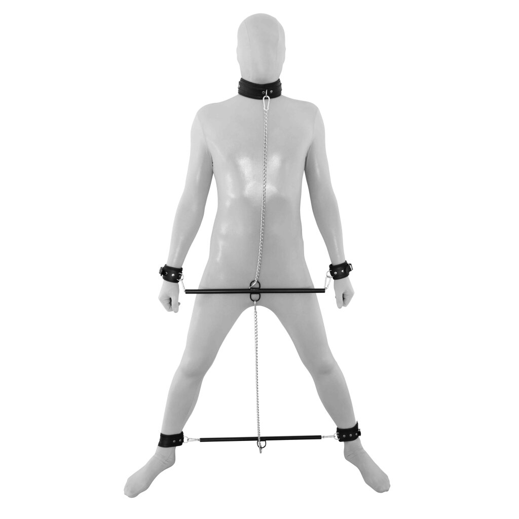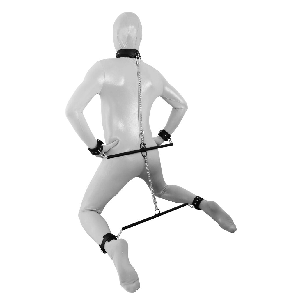 Place your sub in the collar, hand- and ankle cuffs and you are in full control. Enjoy your sub for as long as you like with this Prisoners set.