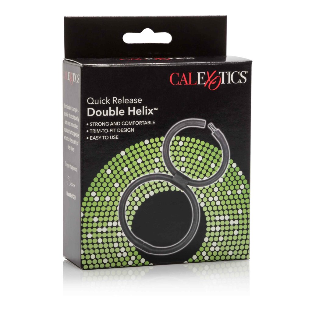 Enjoy double the arousal, stimulation, and extended play fun, with the Double Helix Quick Release erection enhancer. The easy to use enhancer is designed to offer a sensuous personalized fit for maximized seduction pleasure, and a prolonged rock hard performance. Indulge in mind-blowing encounters and endless erotic satisfaction every time. The enhancer is made from soft rubber and features two individual rings that are designed for personalized trim-to-fit sizing, and ensure ultimate comfort for stamina support that goes on and on. To use the double helix shaped enhancer, slip the large ring around the scrotum, and the smaller ring around the base of the erect penis, and trim the tubed rubber bands to size. Securely snap the two ends of each ring together, and prepare for tantalizing sensations.Suitable for first-time and experienced users, the enhancer is great for spontaneous exploration. To experience a longer lasting erection, slip the quick release rings on, and enjoy unlimited intimate play. To increase the pleasurable tingles, always use a quality lube with this toy. Before and after every use, remember to clean the rubber enhancer rings with a toy cleaner spray, or wash in warm soapy water.