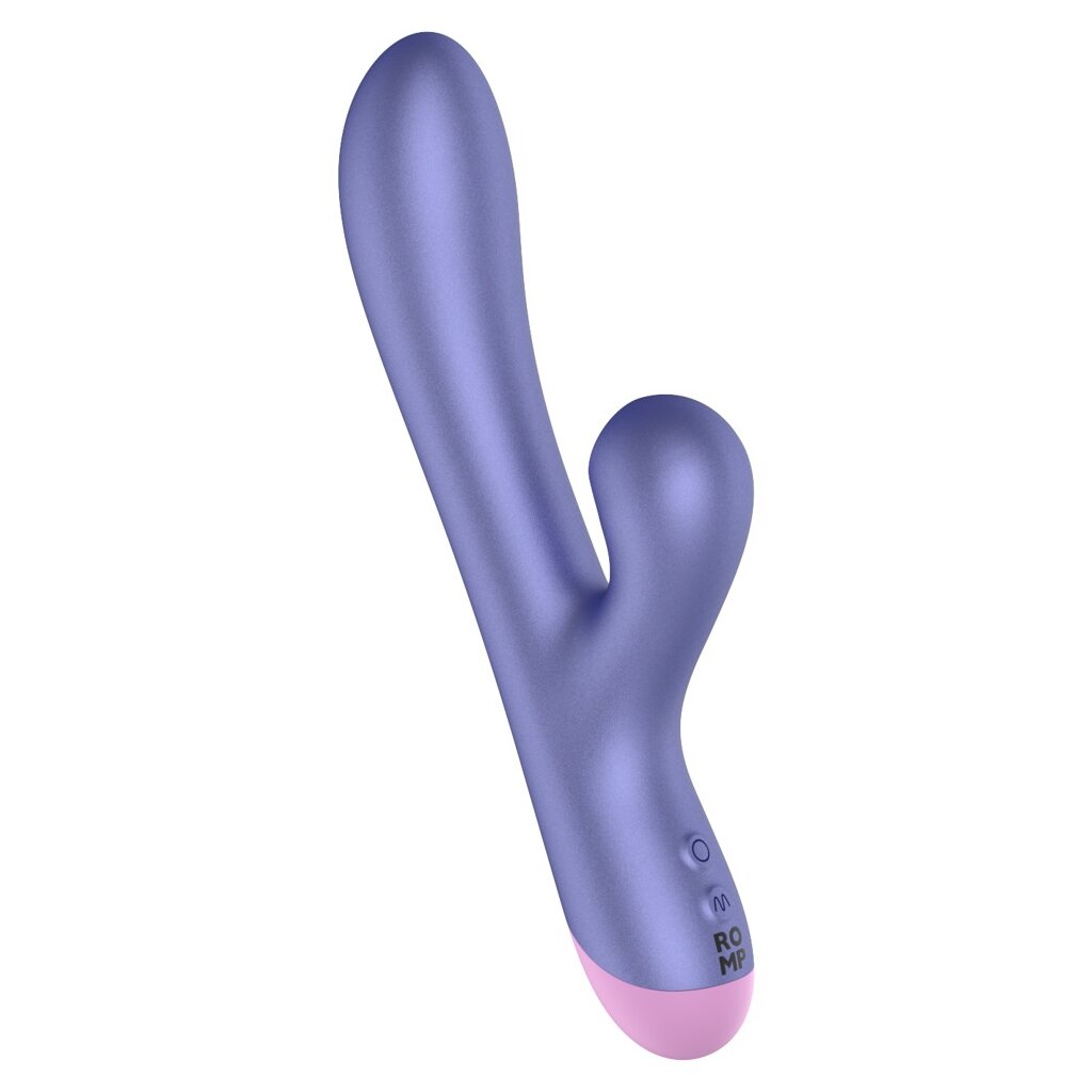 Handlicher Rabbit-Vibrator Pulse von ROMP mit Klitoris-Pulsator. Doppeltes Vergnügen im elegant schimmernden Metallic-Look. Verwöhnt intensiv die Vagina mit Vibrationen (10 Modi) und die Klitoris mit einzigartigen Pleasure Air Stimulationswellen (5 Modi). Beide Funktionen können separat per Knopfdruck direkt am Toy gesteuert werden. 2 leistungsstarke, leise Motoren sorgen für zuverlässige Power. Sogar in der Badewanne und unter der Dusche, denn der Pulse ist wasserdicht. Der Schaft aus seidenweichem Silikon lässt sich leicht einführen und der Pulsator passt sich perfekt an die Klitoris an. Maximaler Komfort mit synchronisierter Stimulation!