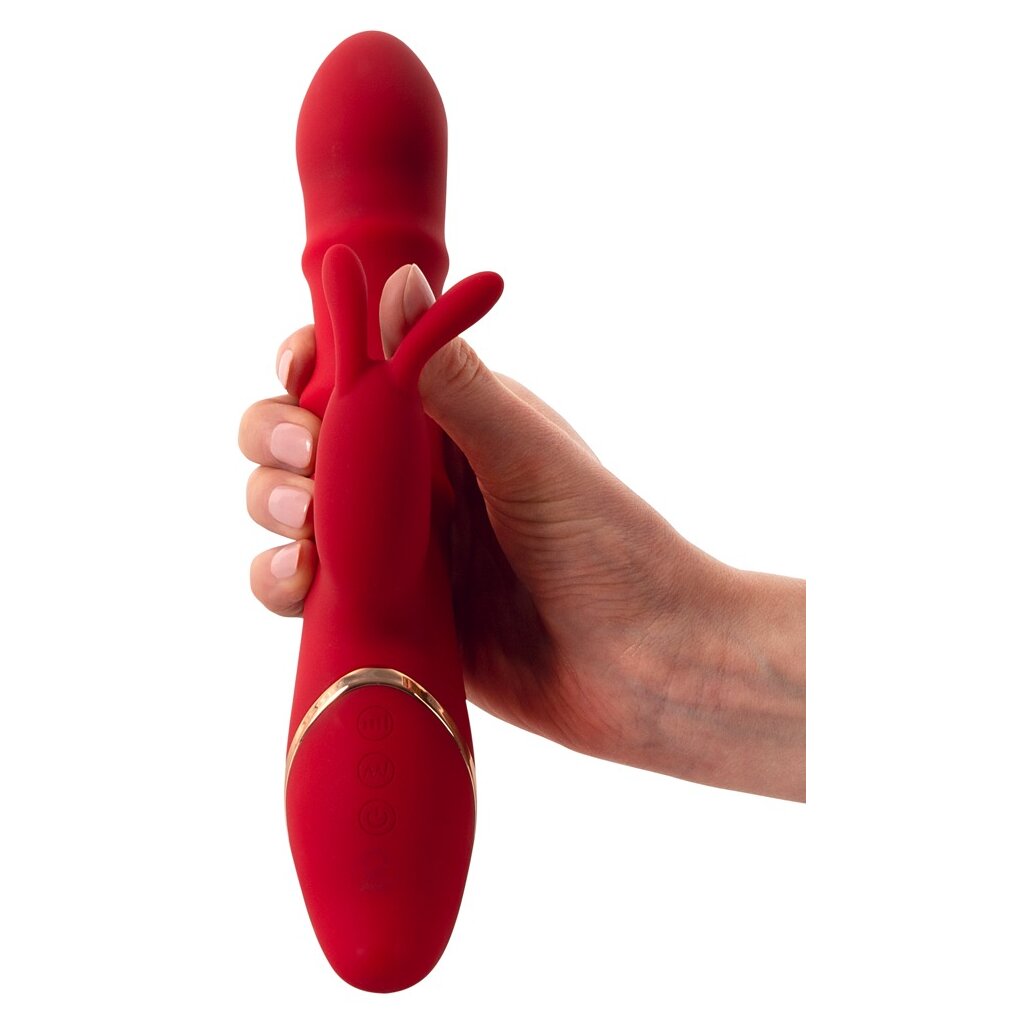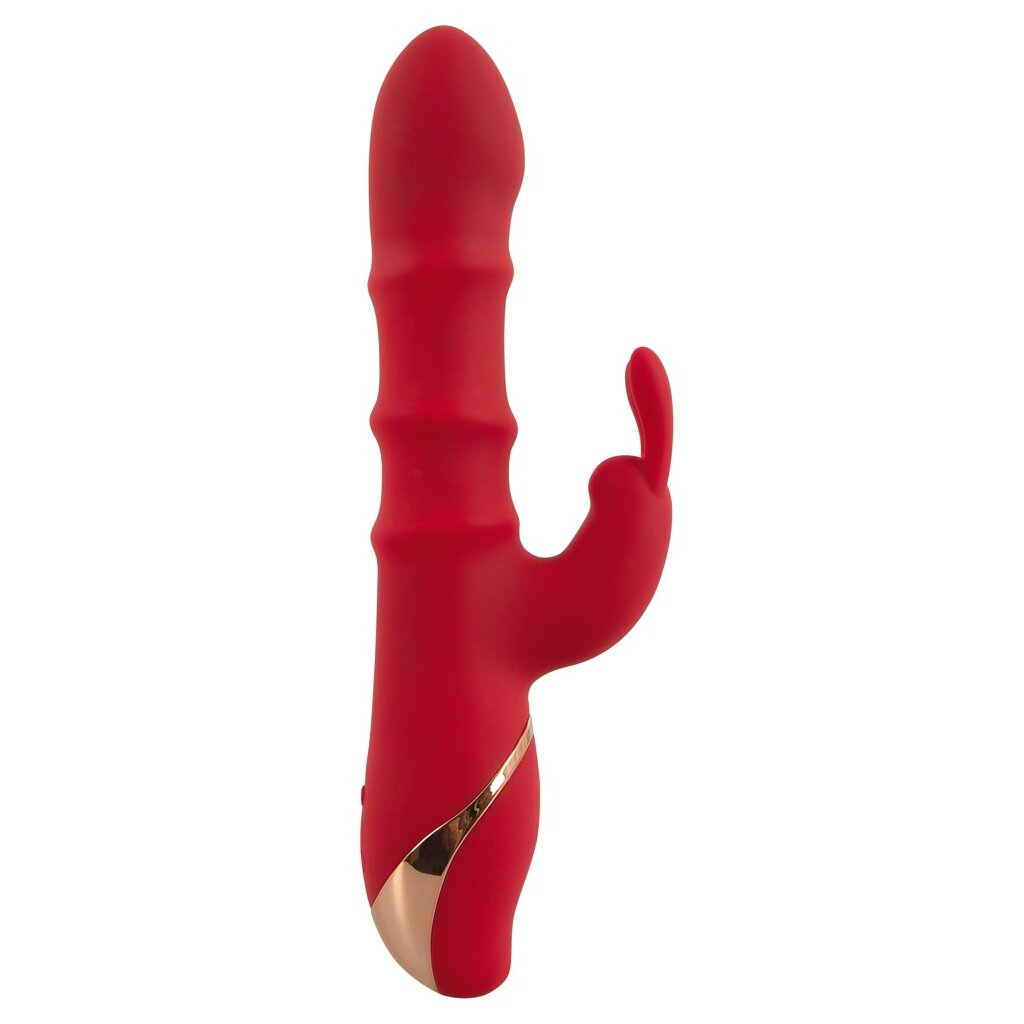 The compact Rabbit Vibrator with 3 Moving Rings from You2Toys delights two hotspots at once! On the inside of the vagina with intense vibrations and the 3 diametrically moving rings. And on the outside, the clitoris with dynamic vibrations. Twice the pleasure for twice the climaxes!