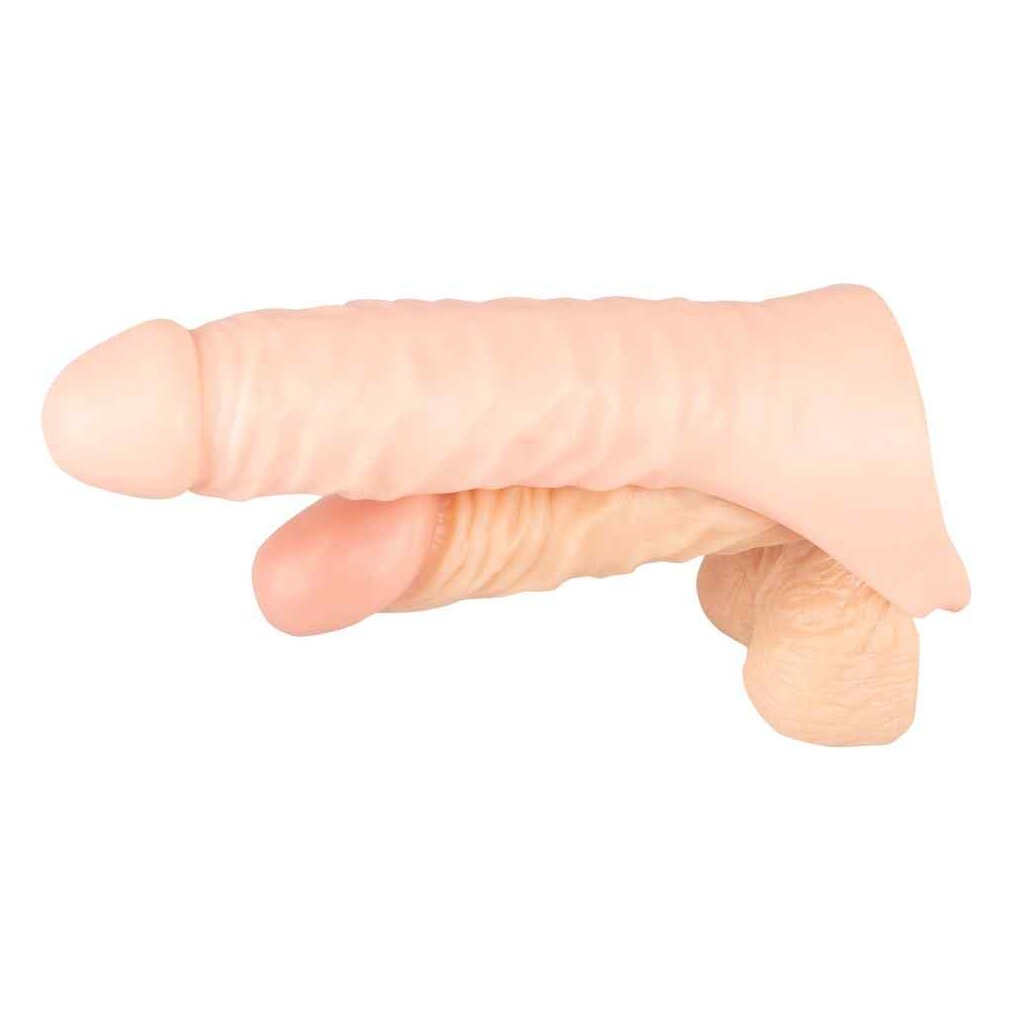 Fait d'une seule pièce : anneau pénis/testicules avec gode naturel Double Fucker de Realistixxx pour combler les doubles pénétrations vaginales. L'anneau pénis / testicules est glissé dessus de sorte que son pénis repose de manière optimale dans le renflement du gode - il est déjà équipé de 2 pénis pour satisfaire deux fois ! L'anneau pénis/testicule extensible assure un maintien ferme. Peut également être utilisé avec un vibrateur (non inclus) et pour les doubles pénétrations anales. Le gode naturel flexible et souple en matériau Real Feel procure une sensation très agréable sur la peau lorsqu'il est porté et choyé.