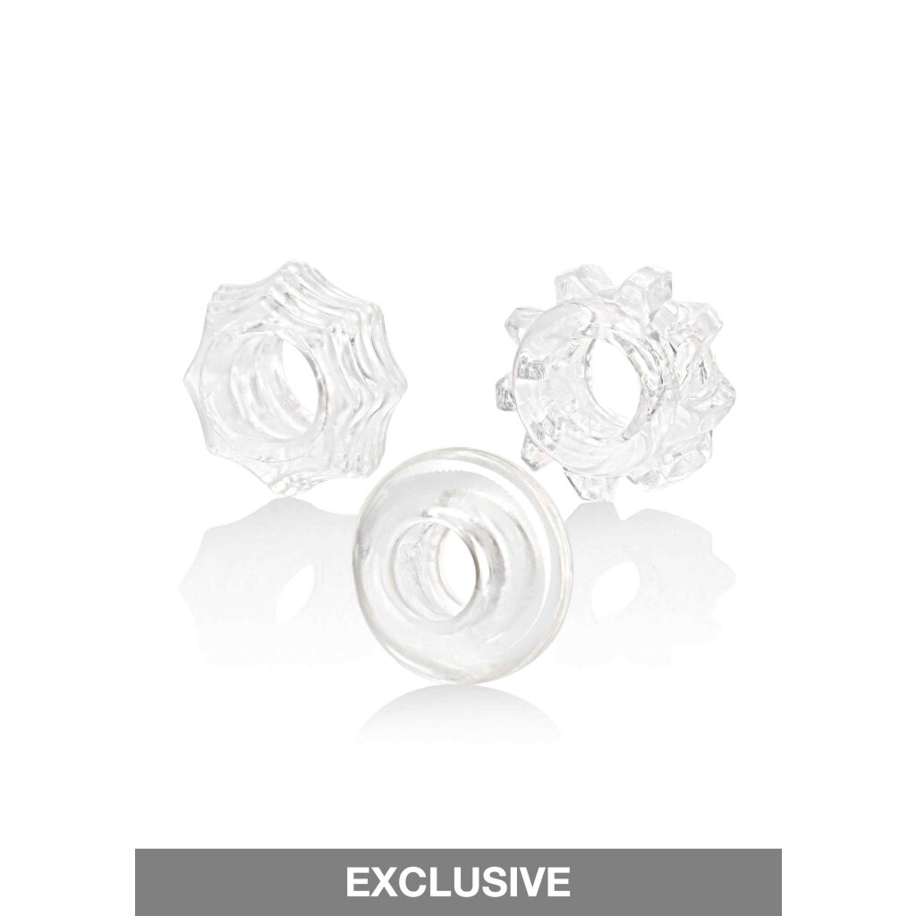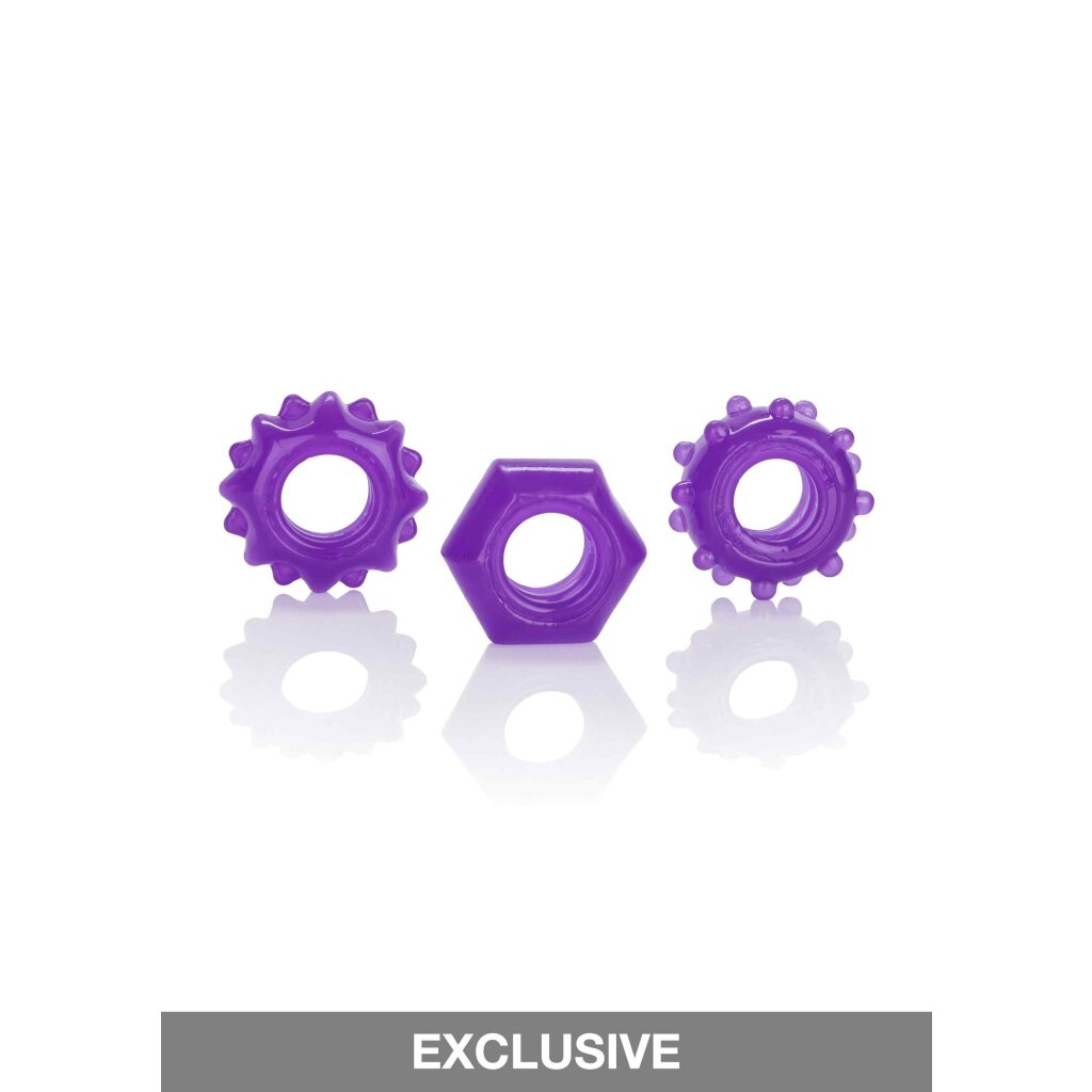 Ajoutez du piquant à votre soirée avec le set d'anneaux réversibles polyvalent. Cet ensemble de 3 pièces est idéal pour maximiser votre plaisir érotique, et peut être porté confortablement pendant les préliminaires ou lors d'un jeu en solo. Les anneaux extensibles faciles à utiliser sont épais et durables, et parfaits pour les utilisateurs débutants et expérimentés. Le trio entièrement réversible présente des crêtes texturées et des rainures sensuelles pour des sensations accrues pendant l'action de stimulation. Les anneaux de soutien sont conçus pour glisser confortablement en place afin de fournir un support d'endurance, pour une extase prolongée et un orgasme explosif. Laissez libre cours à votre imagination. Utilisez-les individuellement en tant qu'anneaux d'érection, de scrotum et de couverture complète. Essayez-les ensemble pour une conduite plus épaisse. Les options sont infinies pour vous préparer au plaisir ultime et à une rencontre inoubliable. Pour augmenter encore plus la sensibilité, utilisez toujours un lubrifiant de qualité avec ce jouet d'amélioration. Avant et après le jeu, nettoyez les anneaux de maintien de l'érection avec de l'eau savonneuse douce ou un spray nettoyant pour jouets.