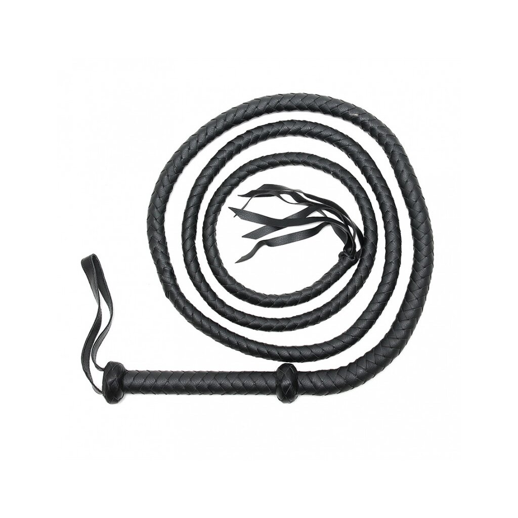 • Rimba Bondage Play lange schwarze Bullenpeitsche aus Polyurethan in Lederoptik, 250 cm.