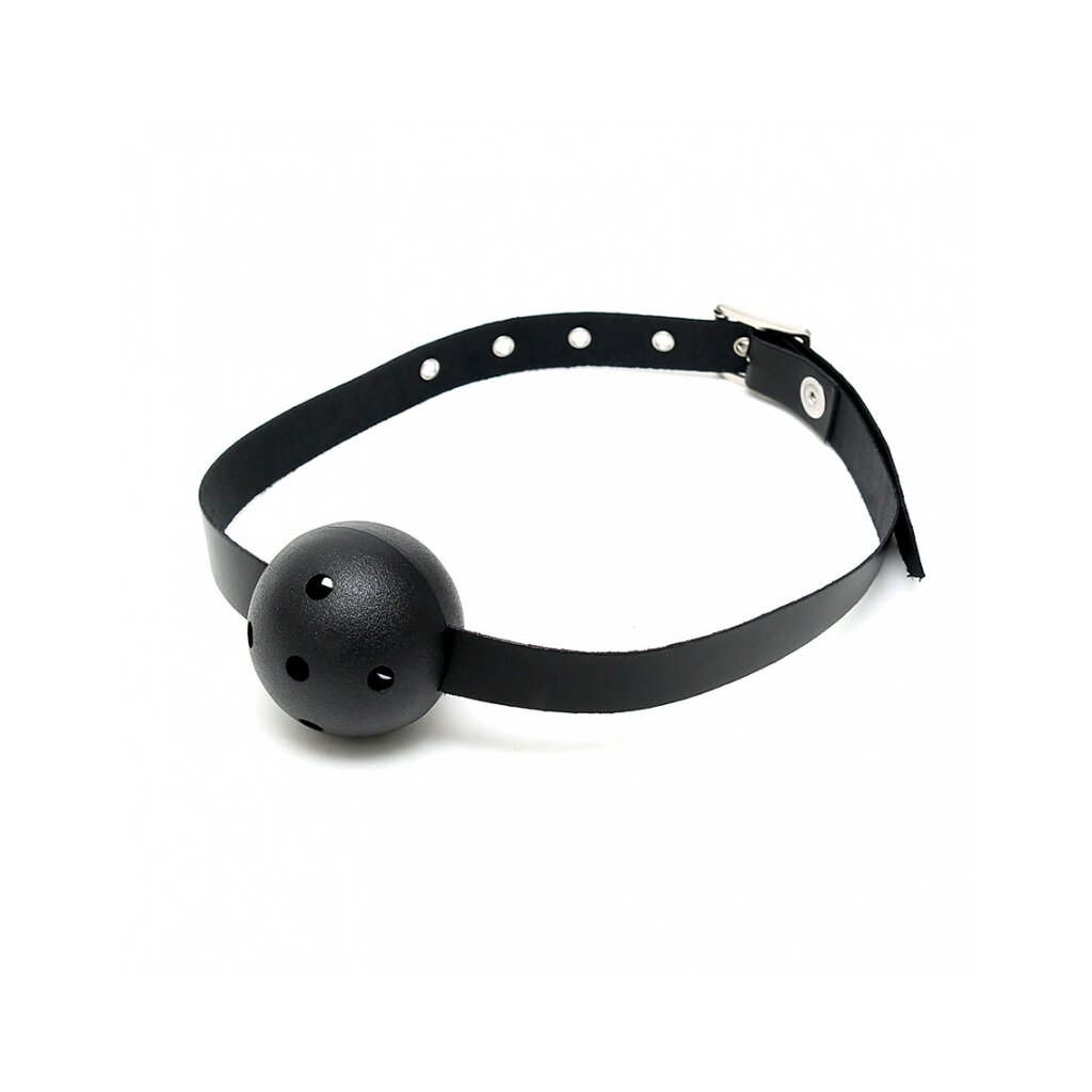 This Rimba gag combines restriction and sensual control in an elegant, effective design. The firm plastic ball fills the mouth, silencing speech while heightening awareness of every breath and movement. The leather straps wrap smoothly around the head and can be perfectly adjusted using the metal buckle, ensuring a secure yet comfortable fit.
