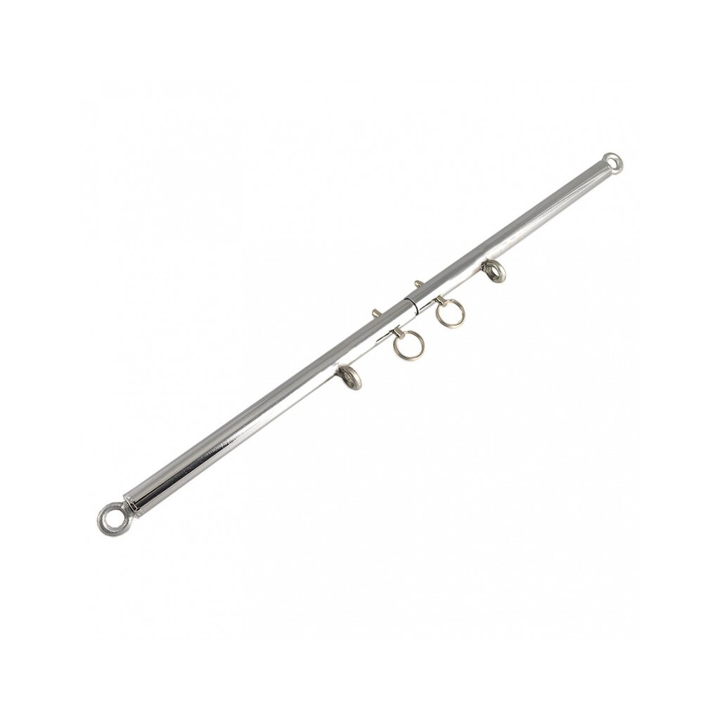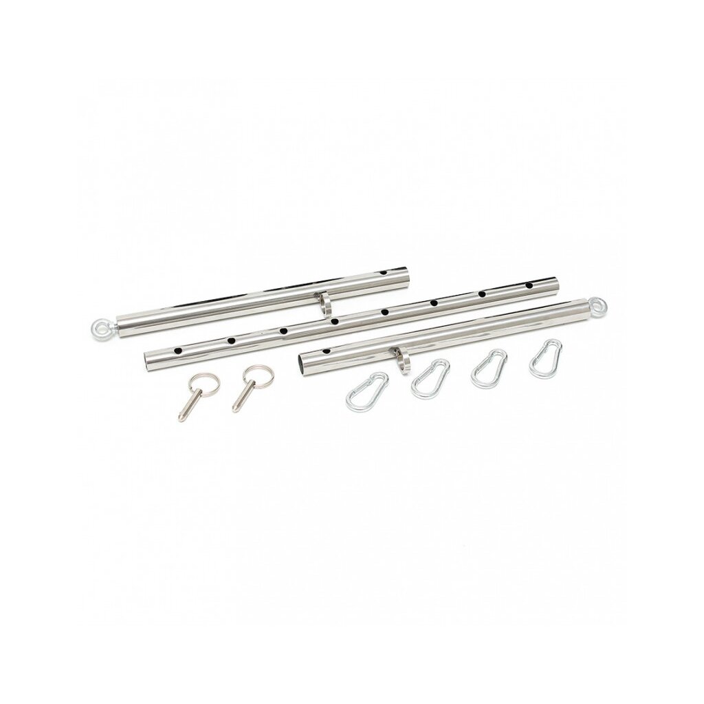 La barre d’écartement Rimba en métal avec 4 anneaux est conçue pour offrir puissance et polyvalence. Réglable de 55 à 85 cm, elle permet d’adapter la position selon les envies et le niveau de contrainte souhaité.