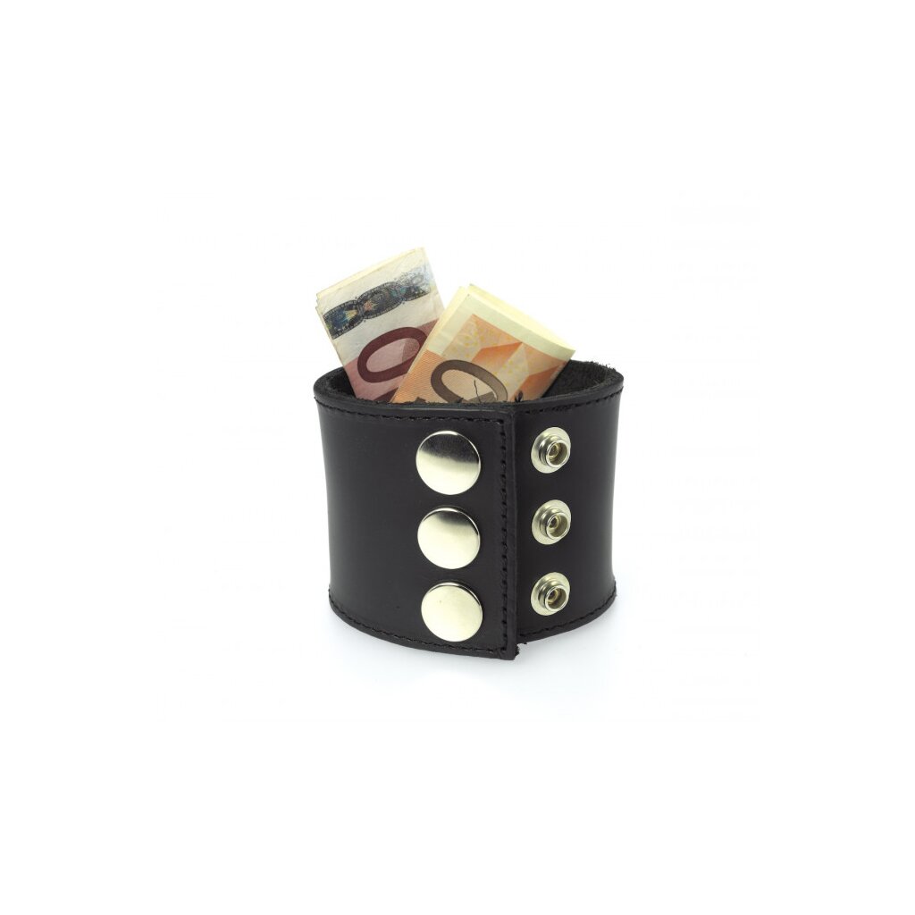Ce bracelet Rimba allie praticité et sensualité dans un design affirmé. Réalisé en cuir véritable, il épouse le poignet avec confort et ajoute une touche virile et élégante à ton style. Le petit porte-monnaie intégré offre un espace discret pour y glisser de la monnaie ou de petits objets personnels.