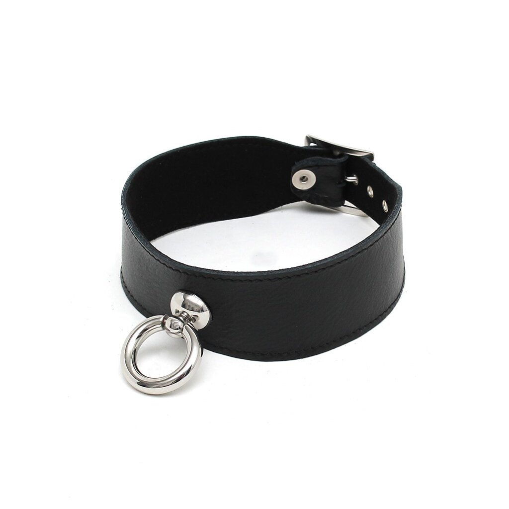 Ce collier Rimba allie élégance et domination subtile. Le grand anneau O au centre attire le regard et permet d’attacher une laisse ou d’autres accessoires de contrôle.