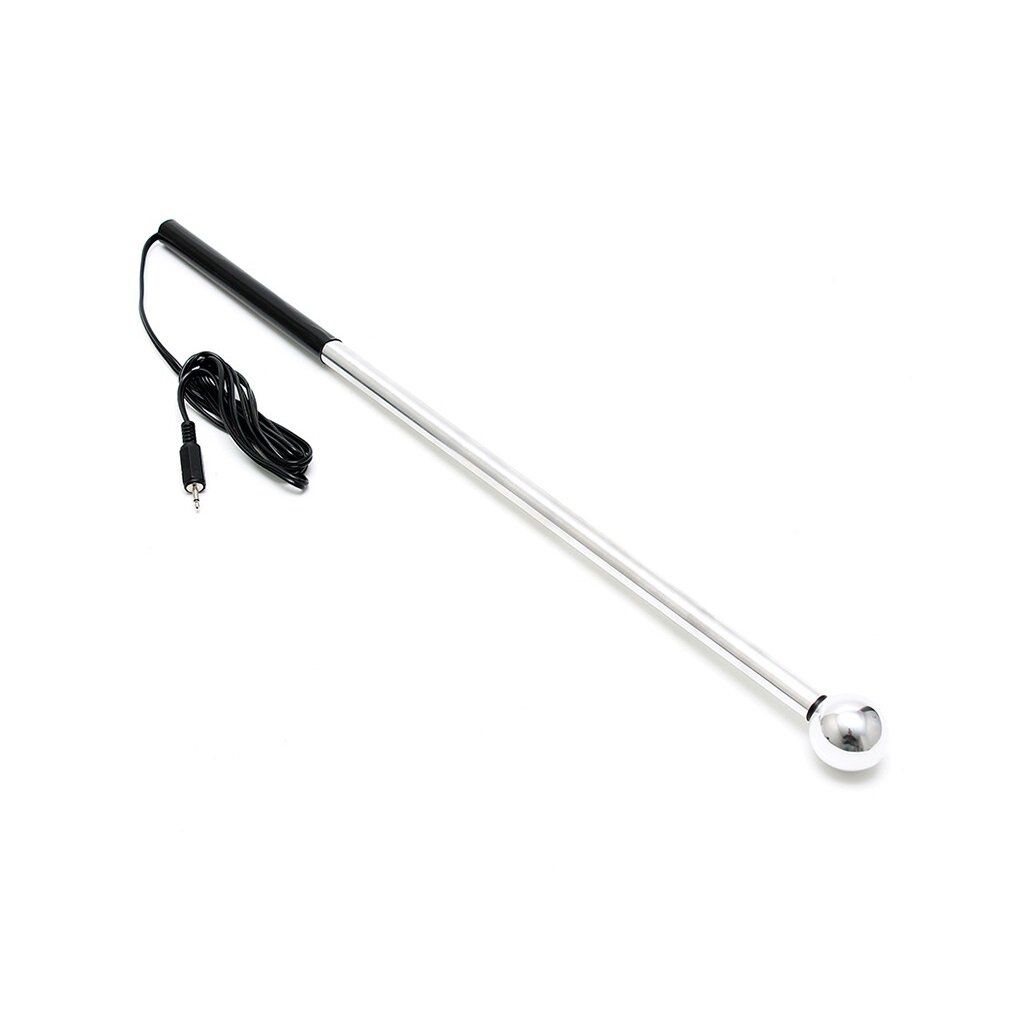 Rimba Electro Play. Dieser Electro Schock Dildo hat eine Länge von 43 cm und ist bipolar. So lange beide polaire Teile gleichzeitig die nackte Haut berühren, funktioniert die schockende Wirkung. Der Elektro Dildo verfügt über einen 2,5-mm-Klinkenstecker der direkt an alle Rimba Power Box-Geräte angeschlossen werden kann. Durchmesser: 3 cm / Länge: 43 cm / Material: Aluminium