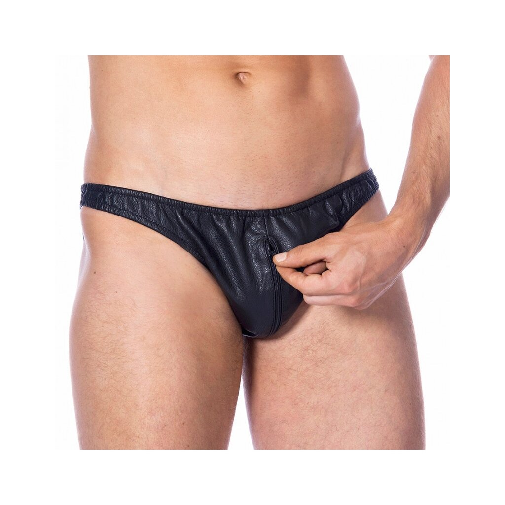 Dieser Herrenslip von Rimba in Größe XL verbindet luxuriöses Leder mit praktischer Funktionalität.
