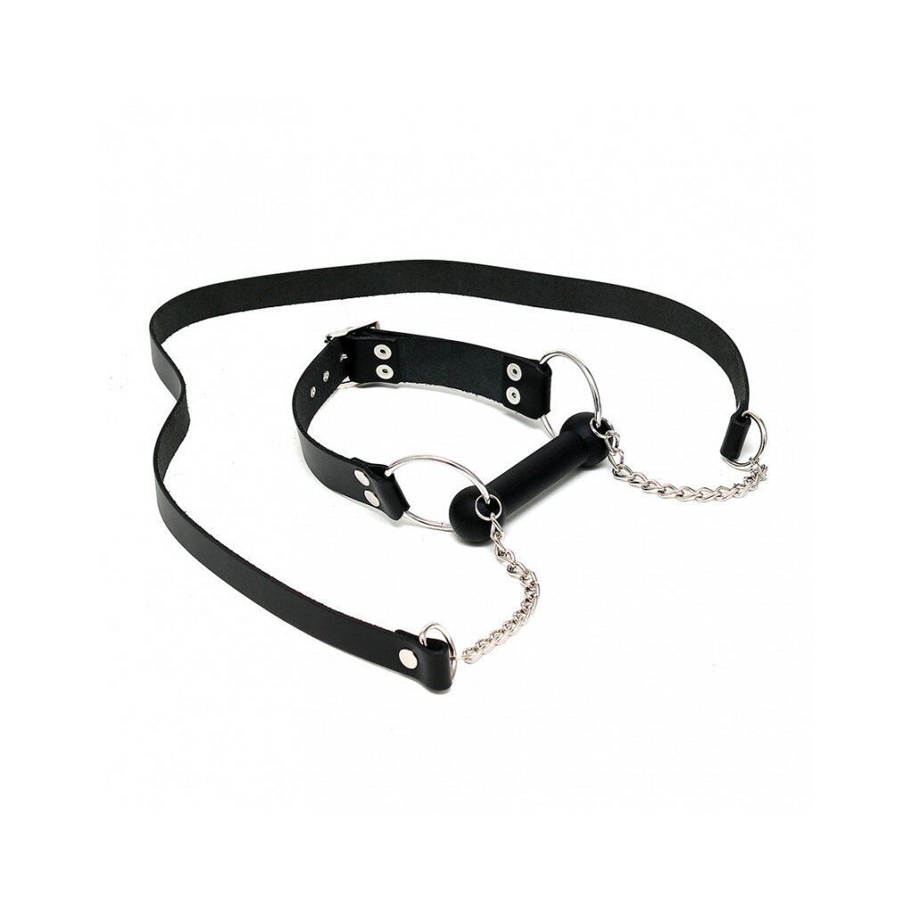 Rimba Bondage Play. Bit de cheval en silicone avec une bride en cuir. Ce bâillon se ferme avec une sangle à l'arrière de la tête avec une boucle en métal. Réglable avec boucles / Matériaux : cuir, Silicone
