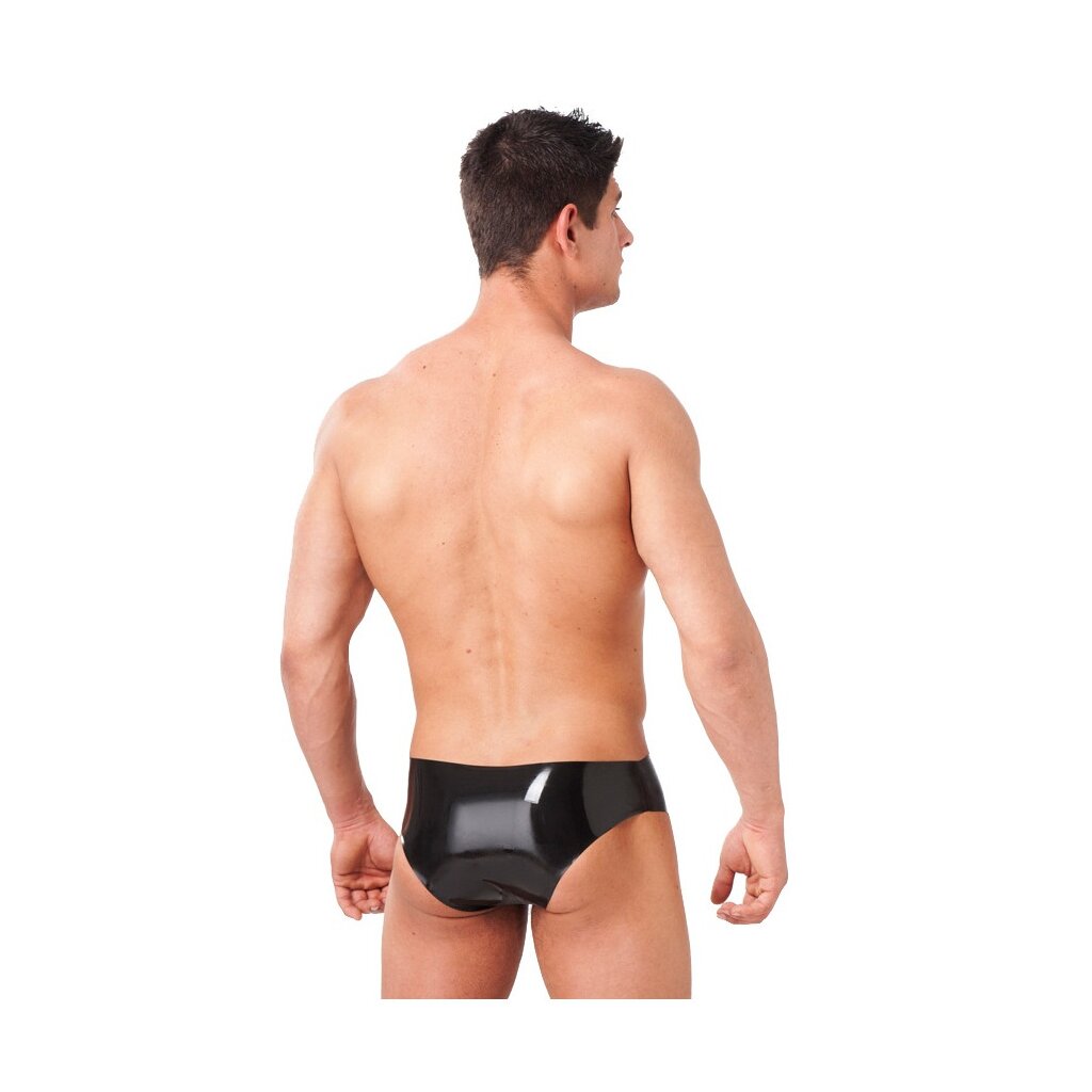 Herrenslip mit Sleeve auf der Vorderseite und über 600% Stretch. Die Länge des Sleeves beträgt 13,0 cm und der Durchmesser des Sleeves 4,5 cm. Größe S / Materialzusammensetzung: 100% Latex