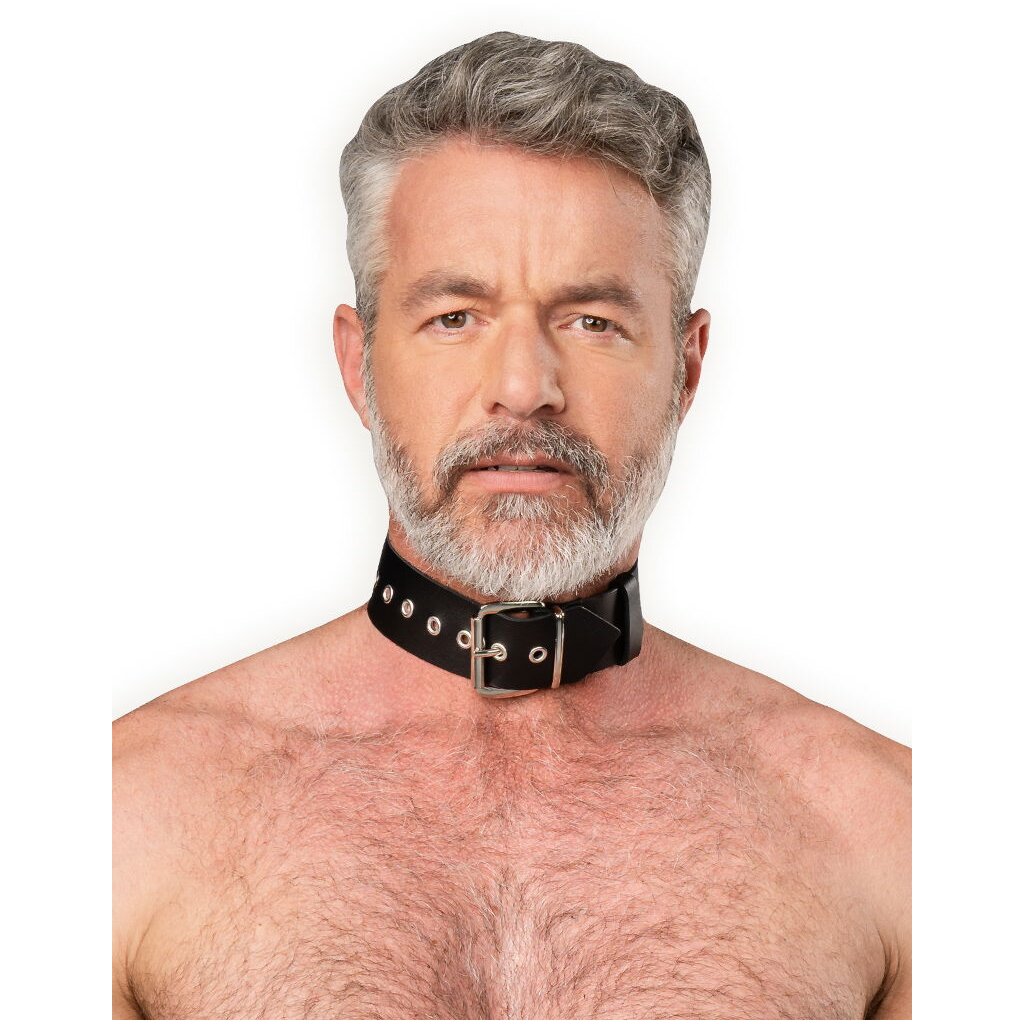 This impressive Rimba Bondage Play collar is handcrafted from genuine saddle leather, combining strength, comfort, and sophistication. The firm yet smooth leather wraps securely around the neck, while the large front buckle adds a bold visual and functional centerpiece.