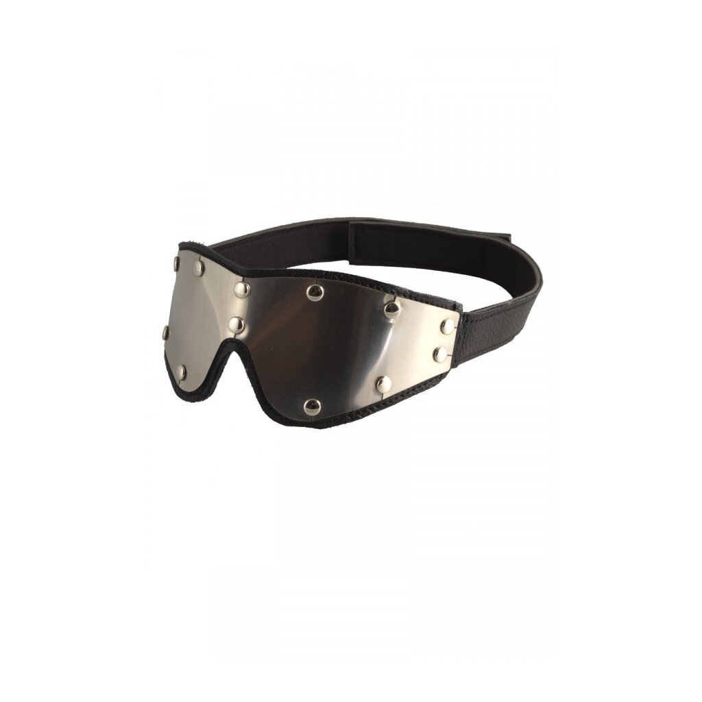 This exquisite Rimba blindfold combines refined design with comfort and control. Made from soft split leather and reinforced with flexible metal plates on the outer edges, it adapts perfectly to the contours of the face for a secure, personalized fit.