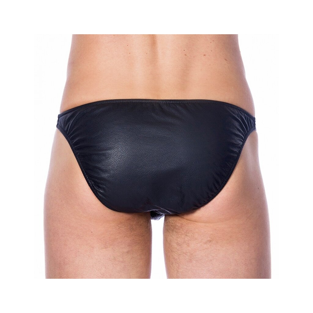 Le cuir nappa noir offre un confort souple, et la ceinture élastique garantit un ajustement fiable. C’est un modèle classique pour ceux qui aiment le cuir sur la peau et recherchent une allure masculine et assumée.