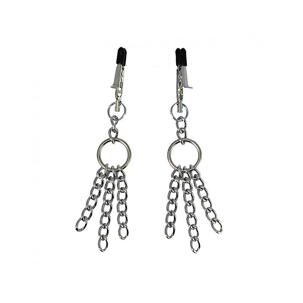 The Rimba Nipple Clamps with Three Short Chains blend sophistication and erotic tension. Each clamp can be finely adjusted to deliver the perfect level of pressure — from gentle teasing to deep, thrilling stimulation. The three short silver chains create an enticing interplay of weight and movement, amplifying sensation with every breath and motion.