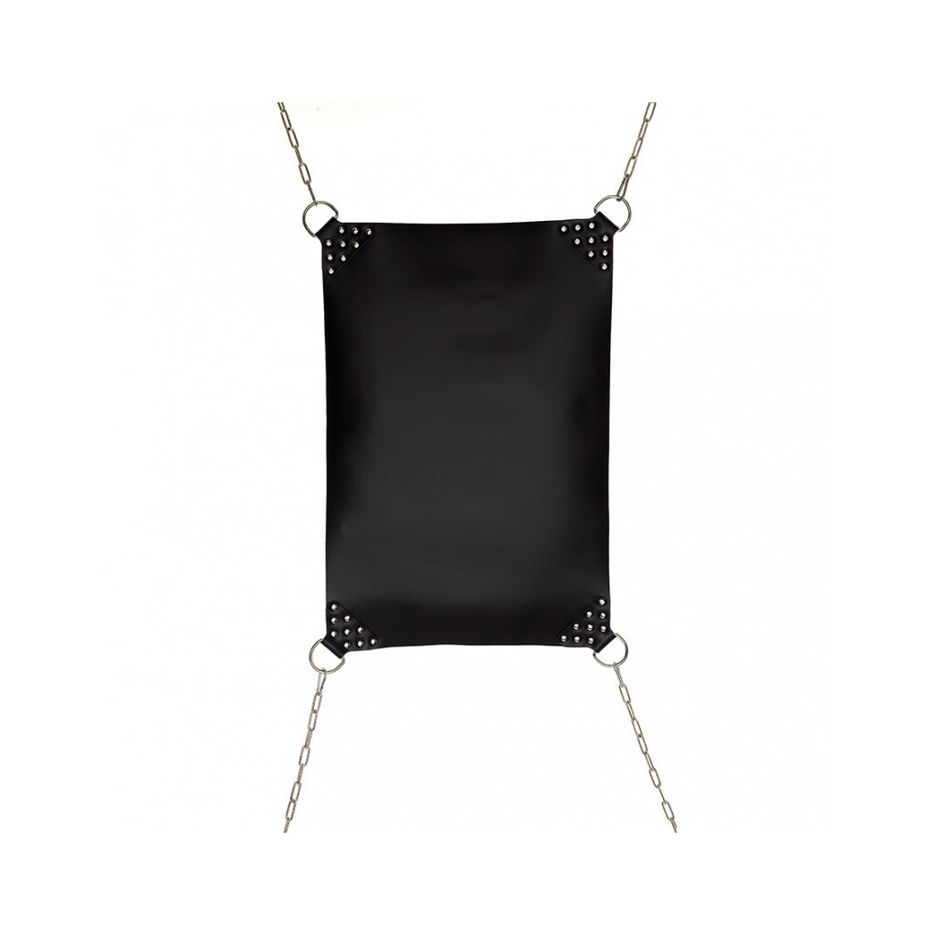 The Rimba Leather Sling is a high-quality hammock-style restraint system designed for intense and immersive pleasure. Measuring 50 x 75 cm with a leather thickness of 3 mm, it provides a comfortable and sturdy surface for various play positions. The corners are reinforced with heavy-duty metal joints and feature strong D-rings for reliable suspension. It supports a maximum weight of up to 120 kg. This model comes without chains, giving you the freedom to integrate it into your own rigging system. Perfect for experienced users who demand both strength and flexibility in their BDSM gear.