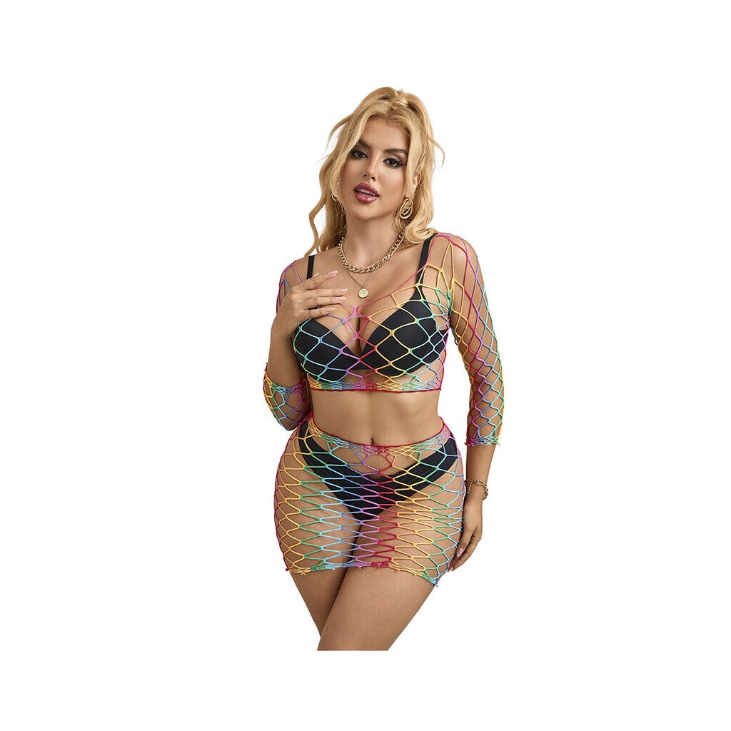 SUBBLIME 2 Piece Fishnet Bodystocking Long Sleeve Rainbow One Size