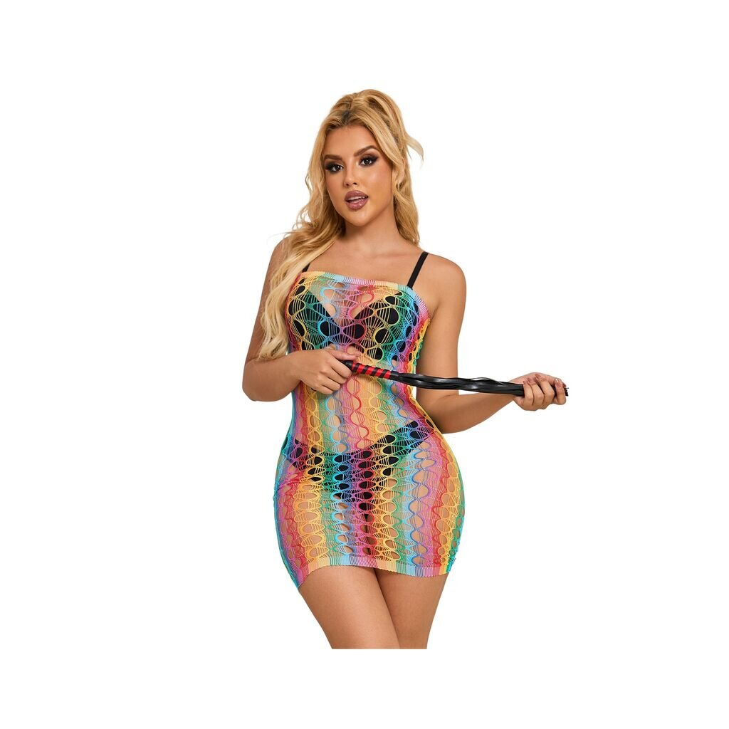 SUBBLIME Rainbow Bare Shoulder Fishnet Bodystocking One Size