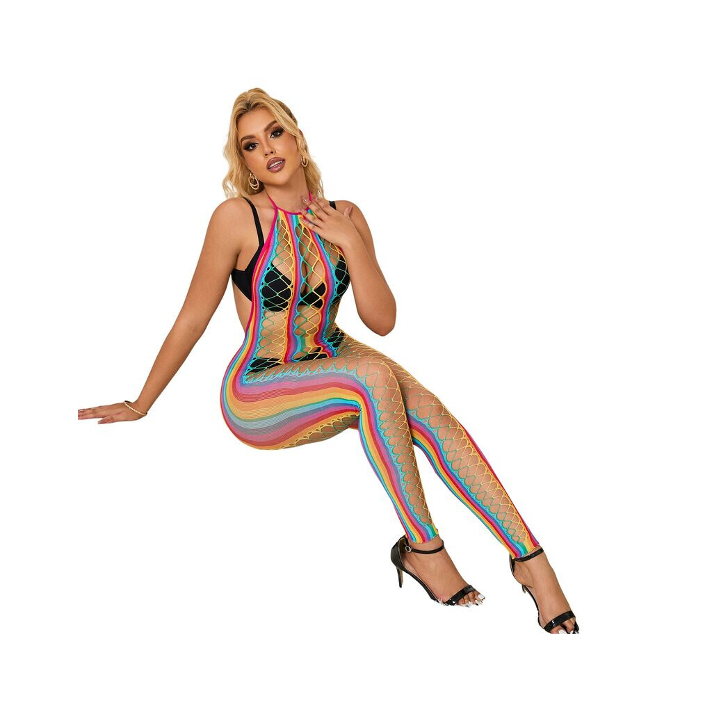 SUBBLIME Rainbow Halter Neck Fishnet Bodystocking One Siz