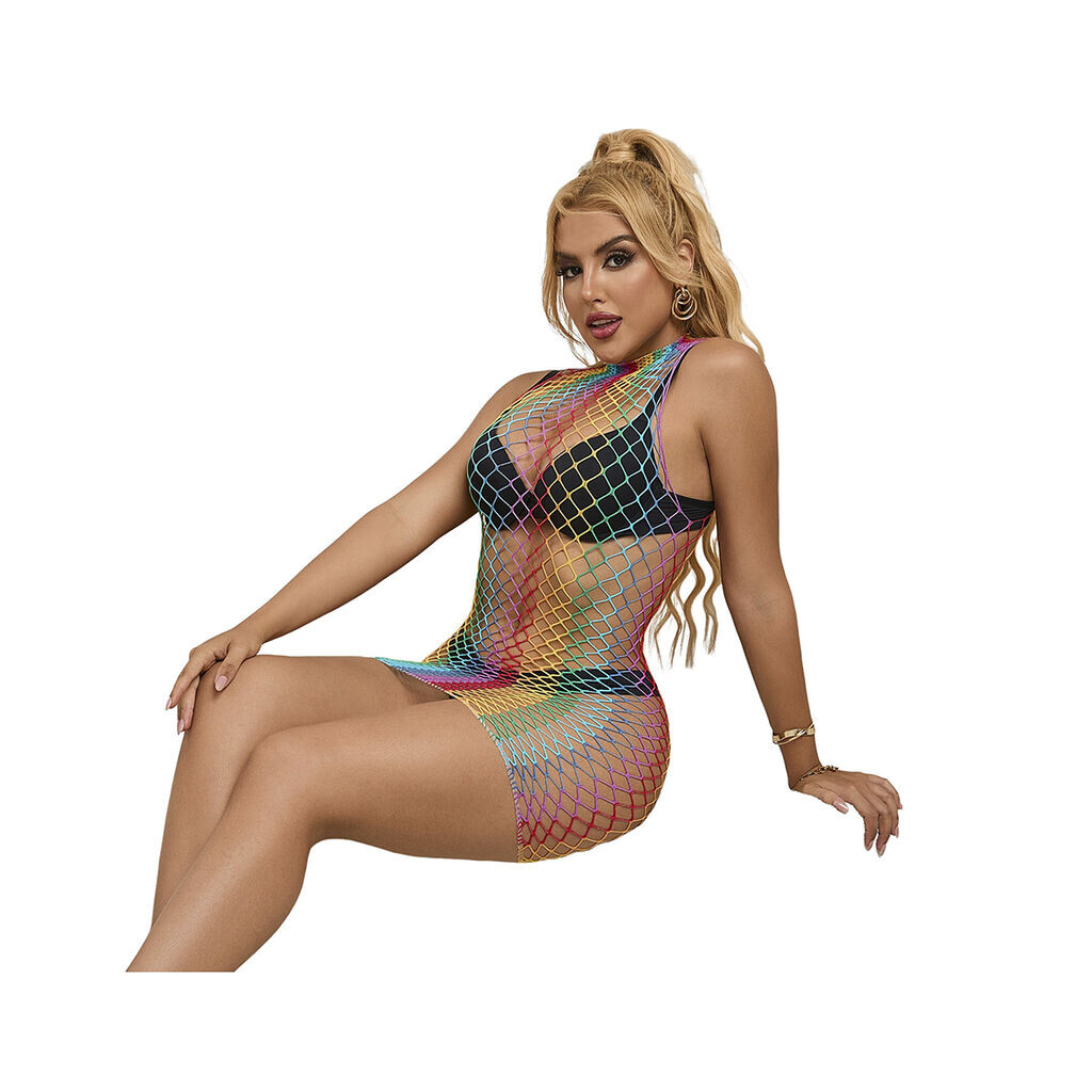 SUBBLIME Rainbow High Neck Sleeveless Fishnet Bodystocking One Size