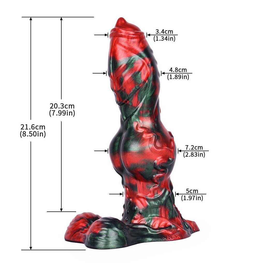 Le Sampson est un jouet fantasy puissant qui séduit par son design audacieux et ses dimensions impressionnantes. Avec une longueur totale de 22 cm, une longueur insérable de 20,5 cm et un diamètre de 7,1 cm, il procure une stimulation profonde et des sensations intenses. Son poids de 553 g garantit stabilité et confort pendant l’utilisation.