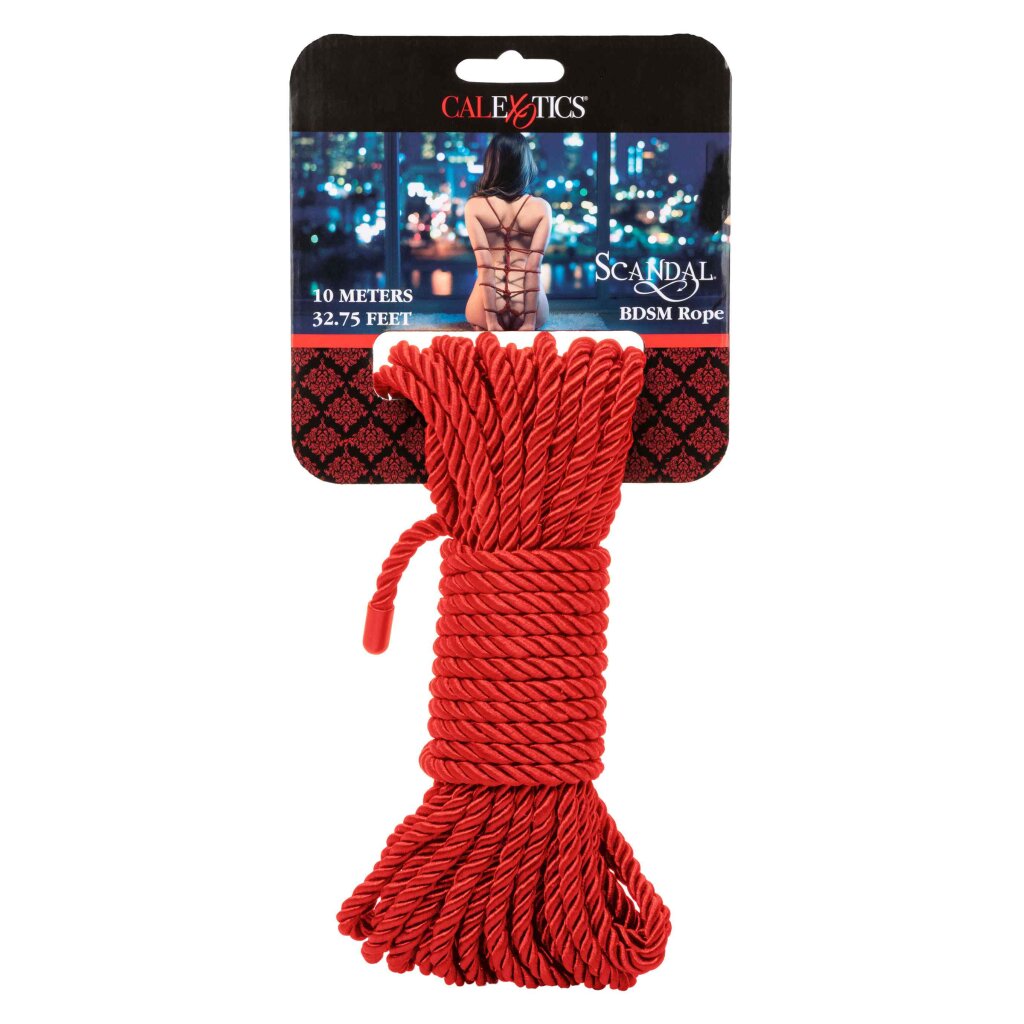 Indulge your wild side and get creative with CalExotics Scandal Rope. The award-winning Scandal collection brings you 1000cm of sensationally silky rope that will take you deep into endless creative bondage play and bondage sex. Surrender to heightened pleasure and arousal with every coil of this slender, versatile rope. Use it to tie wrists, wrap ankles, create naughty decorations or explore unique sexy outfits for kinky and lusty fetish sex. The silky rope is ideal for couples who want to experiment with shibari, bondage and sexual bondage. Take your fantasies to the next level and get scandalous with the endlessly fun Rope sex toy. Total length: 1000 cm / Material: Cotton / Polyester