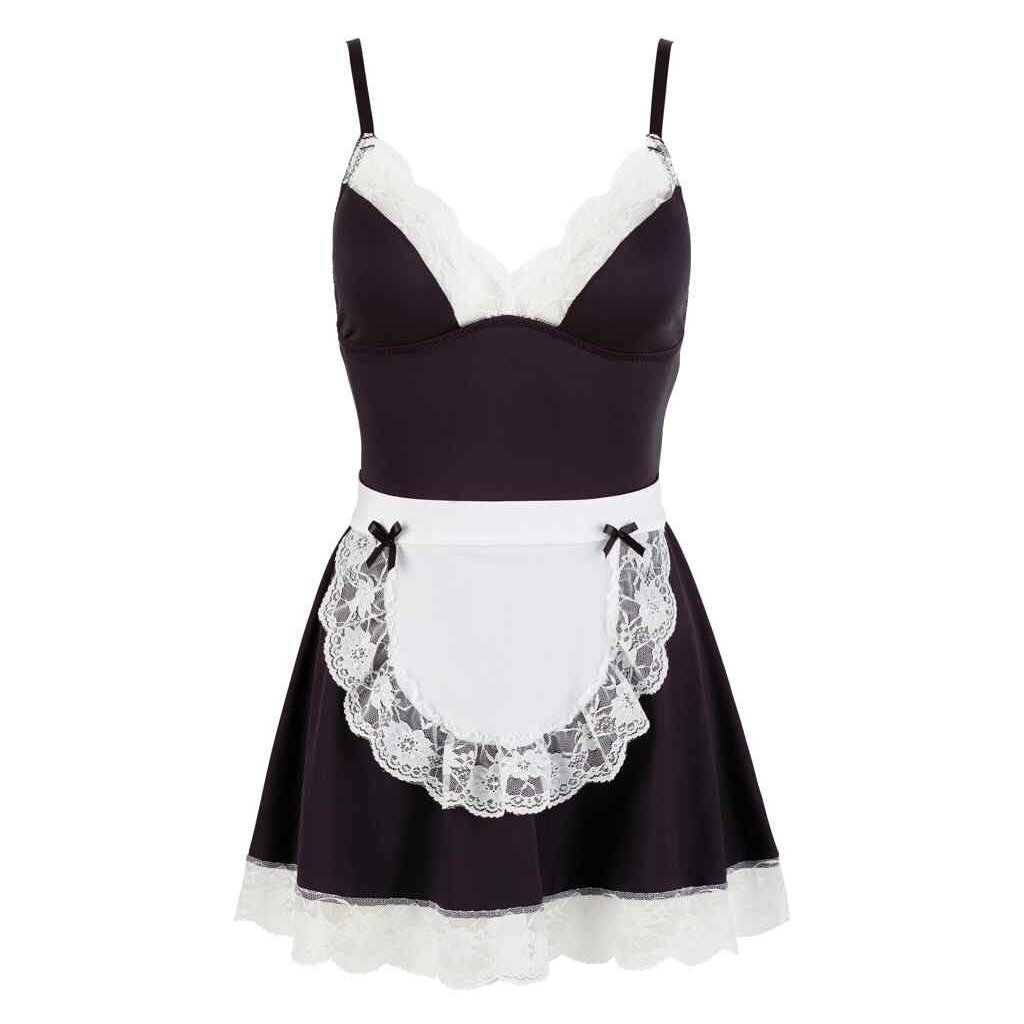 Figurbetontes Minikleid mit verstellbaren Trägern. Leicht ausgestellter Rock und weiße Spitze an Saum und Ausschnitt. Inklusive Hüftschürze mit Spitze und Zierschleifchen zum Binden. Kleid: 86% Polyester, 14% Elasthan. Schürze: 95% Polyester, 5% Elasthan. Gesamte Spitze 100% Polyamid.