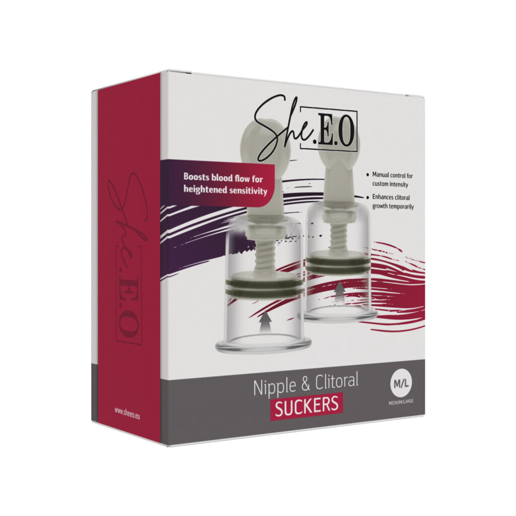 Die She.E.O Nipple & Clitoral Suckers sind elegante Stimulationsaufsätze, die entwickelt wurden, um die Empfindlichkeit zu erhöhen und das Lustempfinden gezielt zu intensivieren. Durch sanften, einstellbaren Unterdruck werden die Brustwarzen oder der Klitorisbereich stärker durchblutet, was zu einem prickelnden, pulsierenden Gefühl führt, das jede Berührung noch intensiver macht.